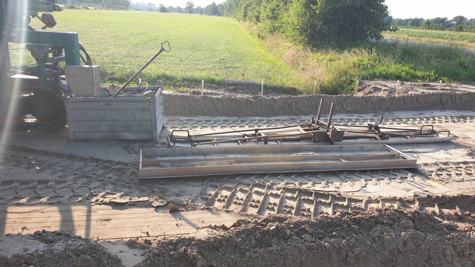 Fietspadbetonstortmachine gearriveerd op site Gorterlaan