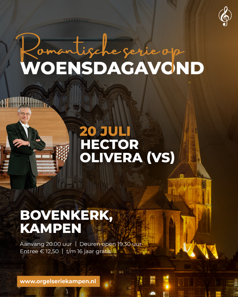 Woensdagavond 20 juli bespeelt de Amerikaanse Hector Olivera het historische Hinsz-orgel in Kampen.