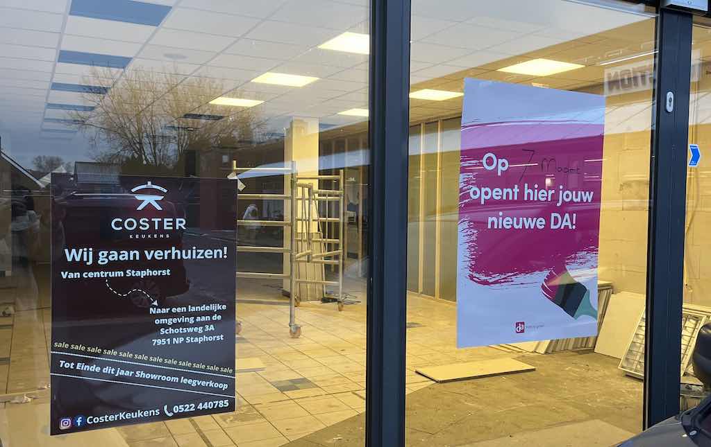 Jaren geleden zat er al eens een DA naast de Action in Staphorst, 7 maart komt er weer een nieuwe. DA Wens aan de Markt gaat verhuizen naar dit pand aan de Boslaan en zal er qua oppervlakte enorm op vooruitgaan.