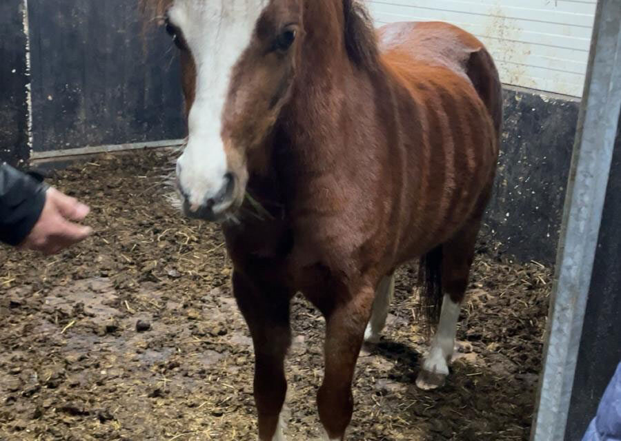 Vanmorgen vroeg liep er een vreemde pony bij ons in de tuin.