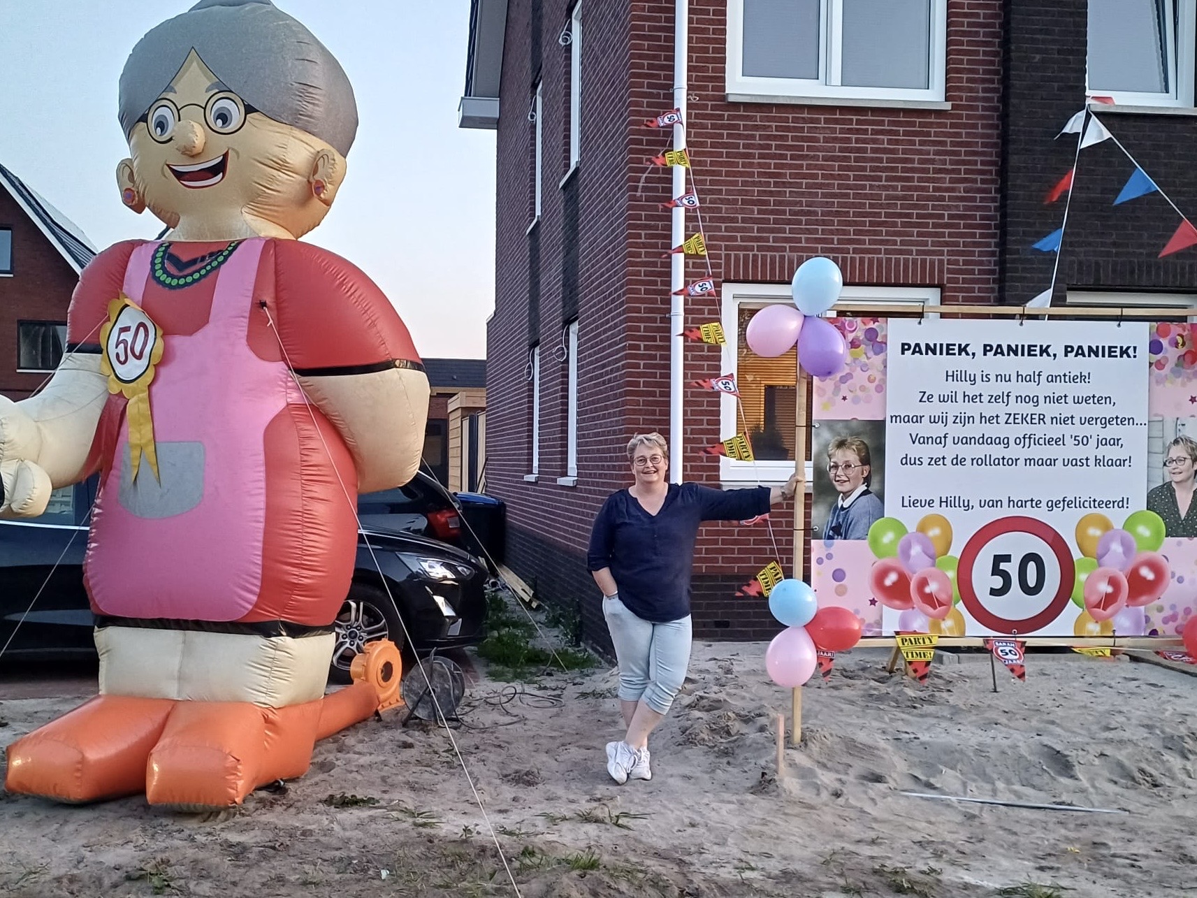 ‘Omdat onze lieve moeder vandaag 50 jaar is geworden, willen we haar graag in het zonnetje zetten! Lieve Hilly, van harte gefeliciteerd, en maak er een mooie dag van! Veel liefs van de familie’