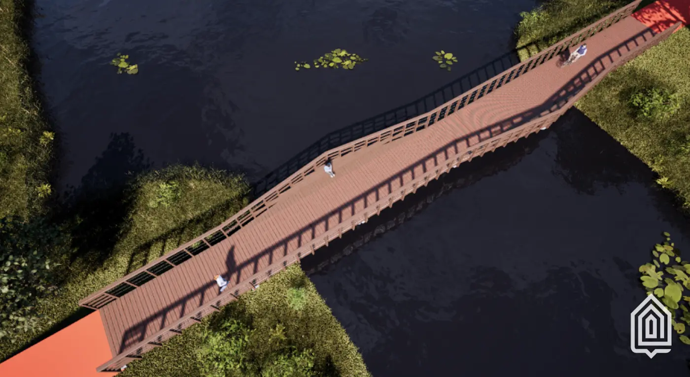 Er komt een brug over het water tussen de Multifunctionele Combischool Rouveen (MCR) en de woonwijk (Fase 1). Deze brug is bedoeld voor fietsers en voetgangers.