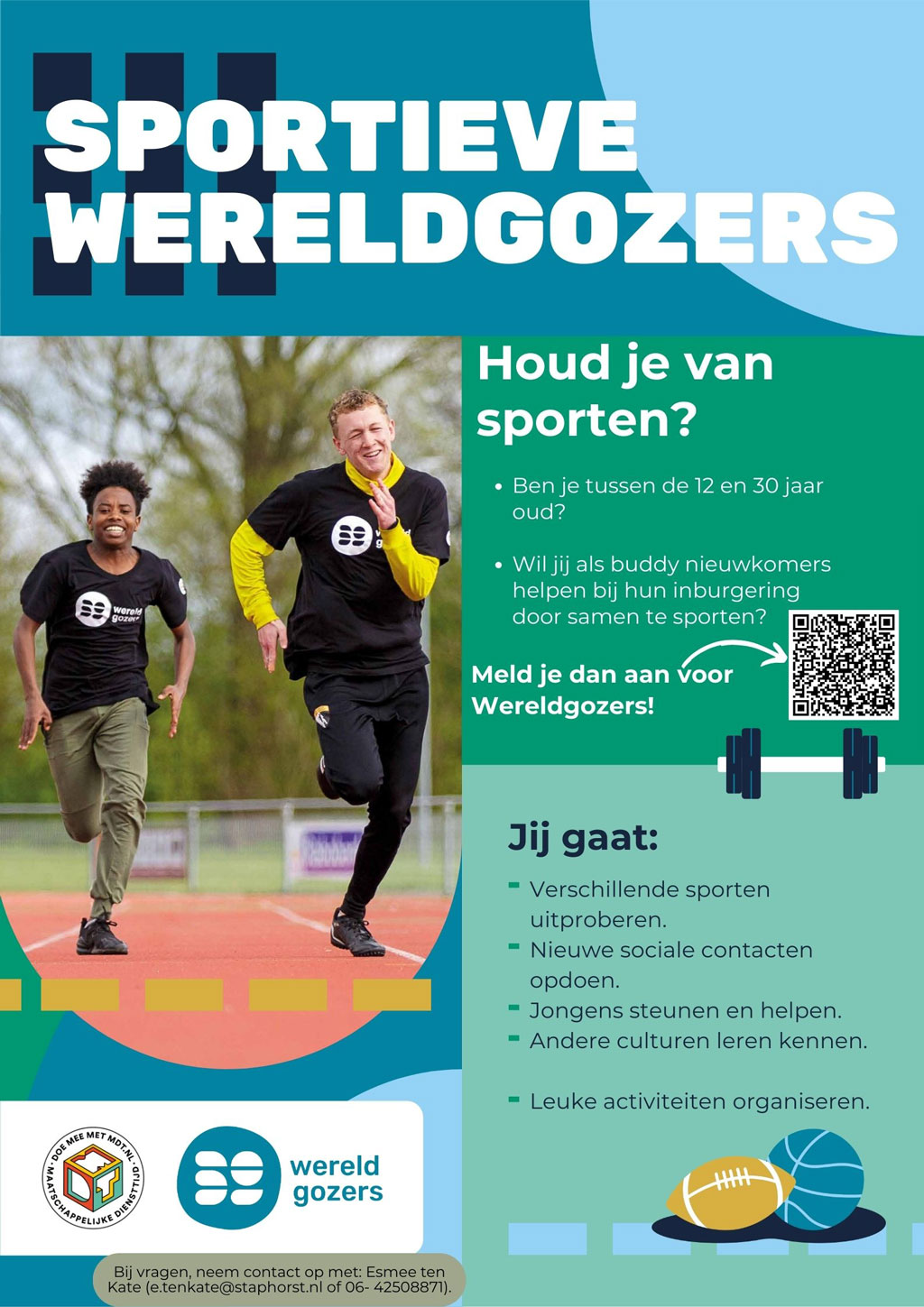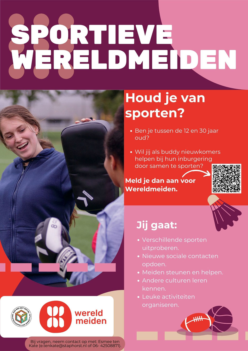 Bij vragen, neem contact op met beweeg- en sportcoach Esmee ten Kate: e.tenkate@staphorst.nl