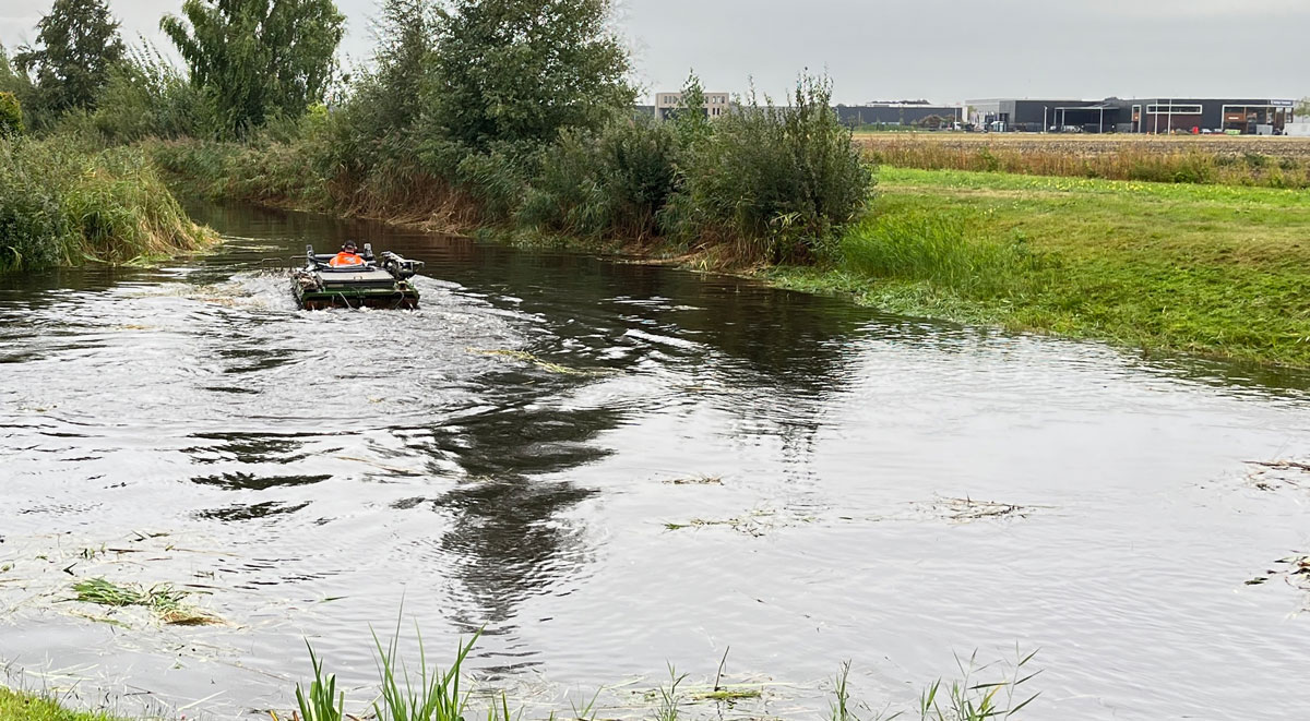 Vandaag wordt de vijver bij het Medisch Centrum en het kanaal (sloot) van begroeiing ontdaan. Daarbij kwam een stalen ros naar boven.