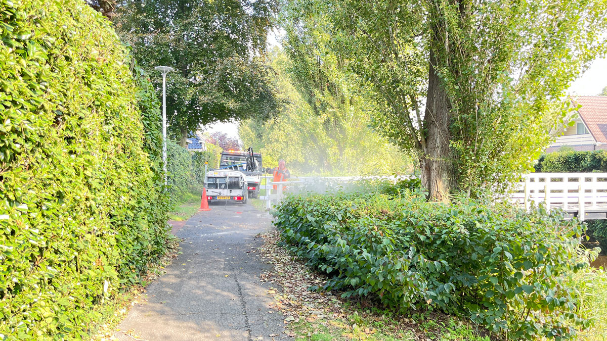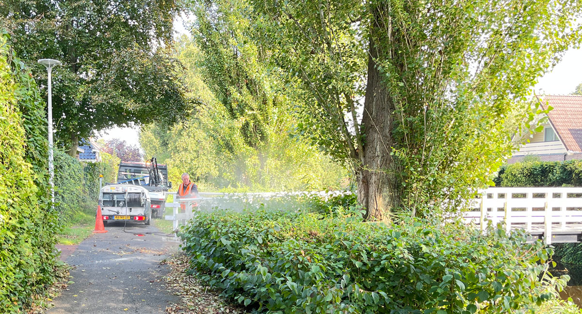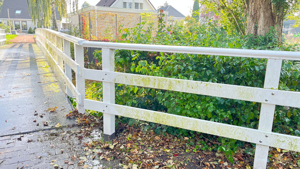 Het hekwerk van de bruggen in Staphorst Zuid krijgen een schoonmaakbeurt. Op sommige plekken zijn de hekwerken al aardig met aanslag bekleedt. Rotten zal het niet doen gezien het kunstoog is maar het is een enorme verbetering van het aanzicht.