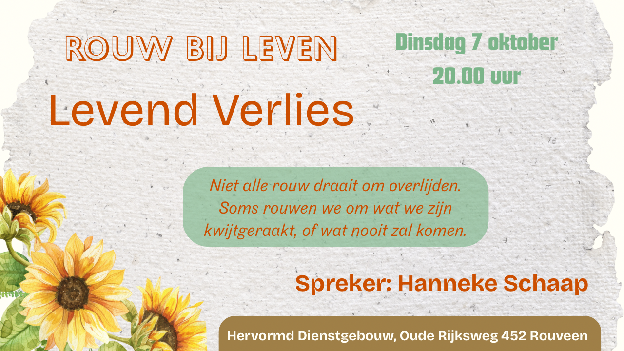 En dit zijn nog maar enkele voorbeelden. In ieders leven kunnen er momenten zijn waarin levend verlies een rol speelt. Juist omdat dit verlies vaak onzichtbaar is, willen we er deze avond bij stilstaan. Deze lezing is daarom waardevol voor iedereen: of je nu je eigen verhaal draagt, of het tegenkomt in je omgeving.