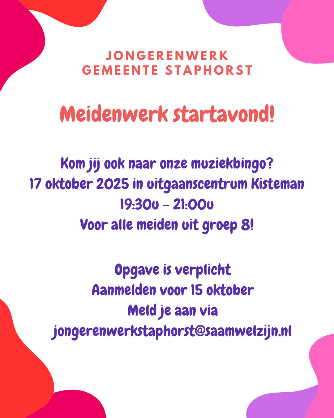 Opgave voor de startavond mag door een mailtje te sturen naar:jongerenwerkstaphorst@saamwelzijn.nl