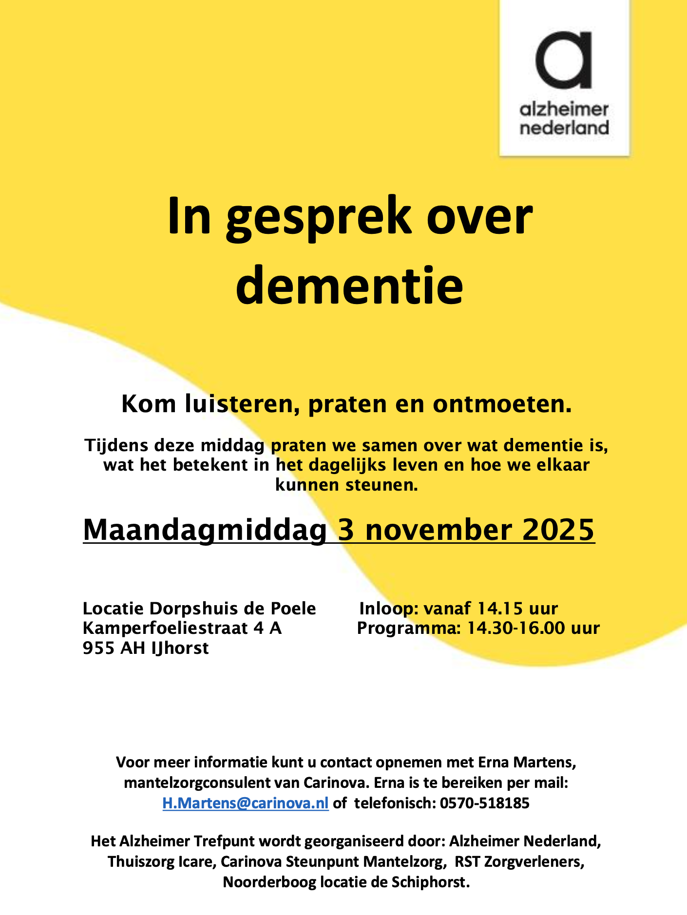 In gesprek over dementie – Maandagmiddag 3 november 2025