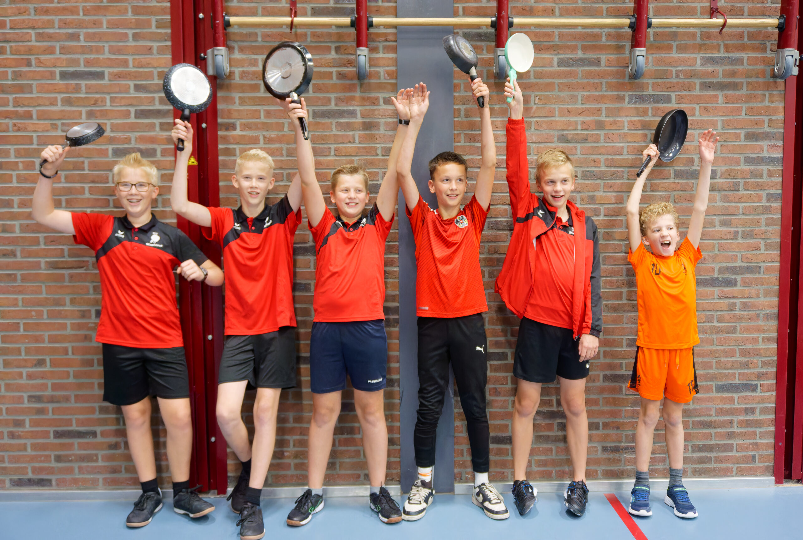 Het ene jeugdlid kwam met een grote of kleine koekenpan, de ander met een steelpannetje waarmee bewezen werd dat je daar ook prima mee kunt tafeltennissen. Het is een kwestie van gewoon terugslaan, een effectbal geven lukt niet. Het spelen met een koekenpan geeft een heel andere klank dan het spelen met een normaal tafeltennisbatje. De zes deelnemende jeugdleden vonden het geweldig.