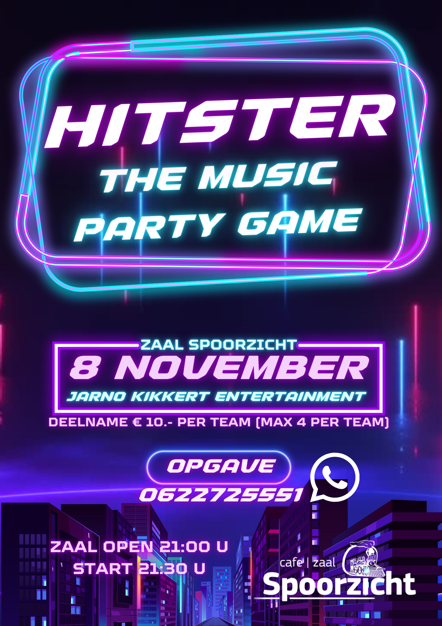 Op zaterdag 8 november vindt in Zaal Spoorzicht in Staphorst voor de 2e keer de Hitster Spelshow plaats. Deze avond staat garant voor een avond vol muziek, plezier en spannende quizvragen. De zaal opent om 21.00 uur en om 21.30 uur barst de strijd los.