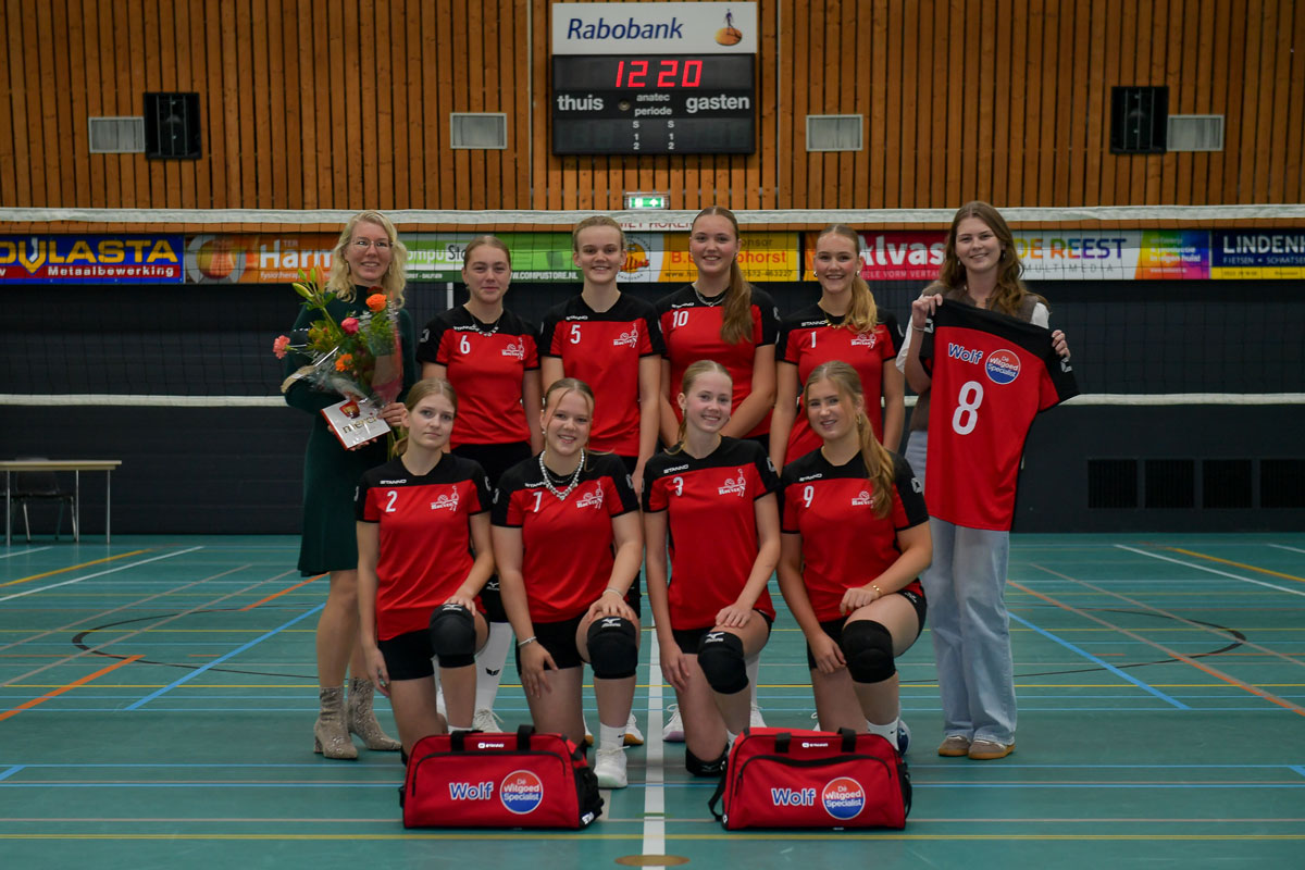 Zaterdag mochten de meiden A2 van Volleybalvereniging Rouveen in hun nieuwe gloednieuwe shirts spelen, mogelijk gemaakt door onze nieuwe gouden sponsor: Wolf de Witgoed Specialist. Niet alleen zagen de meiden er geweldig uit in hun nieuwe tenue, ze wisten ook meteen hun eerste overwinning van het seizoen te behalen. Nadat de eerste twee sets waren gewonnen door het team uit Marknesse, wisten de meiden van A2 de wedstrijd in de derde en vierde set om te draaien en beide sets te winnen. De beslissende vijfde set bleef spannend tot het einde, maar uiteindelijk trok Rouveen aan het langste eind. Een mooie overwinning en een geslaagde start in de nieuwe shirts!