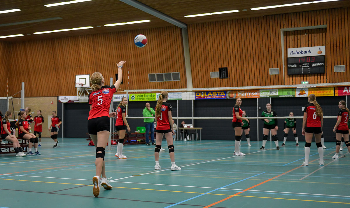 Zaterdag mochten de meiden A2 van Volleybalvereniging Rouveen in hun nieuwe gloednieuwe shirts spelen, mogelijk gemaakt door onze nieuwe gouden sponsor: Wolf de Witgoed Specialist. Niet alleen zagen de meiden er geweldig uit in hun nieuwe tenue, ze wisten ook meteen hun eerste overwinning van het seizoen te behalen. Nadat de eerste twee sets waren gewonnen door het team uit Marknesse, wisten de meiden van A2 de wedstrijd in de derde en vierde set om te draaien en beide sets te winnen. De beslissende vijfde set bleef spannend tot het einde, maar uiteindelijk trok Rouveen aan het langste eind. Een mooie overwinning en een geslaagde start in de nieuwe shirts!