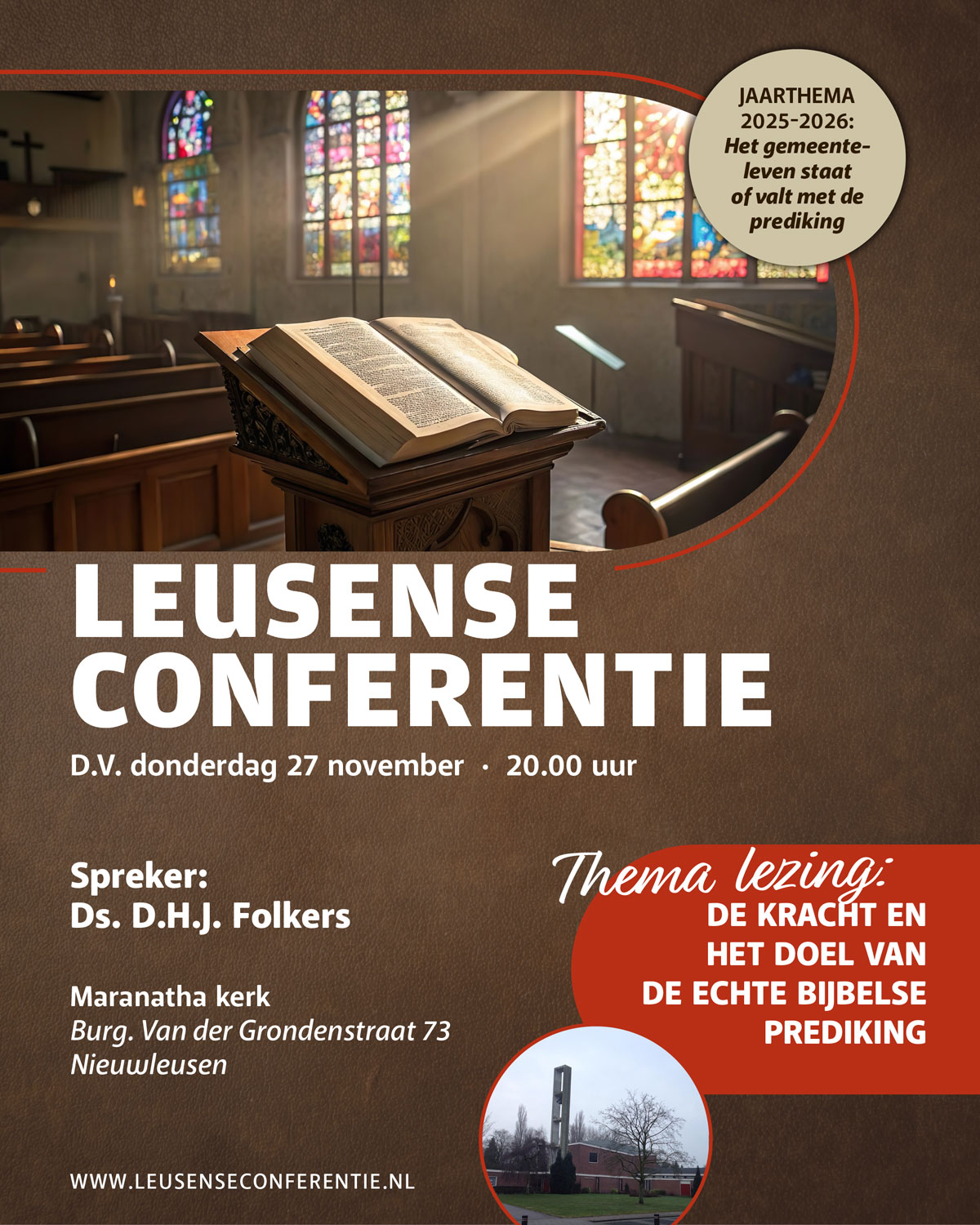 Meer hierover op DV donderdagavond 27 november wanneer ds. D.H.J. Folkers (HHK) zal spreken over het onderwerp: ‘De kracht en het doel van de echte Bijbelse prediking’.