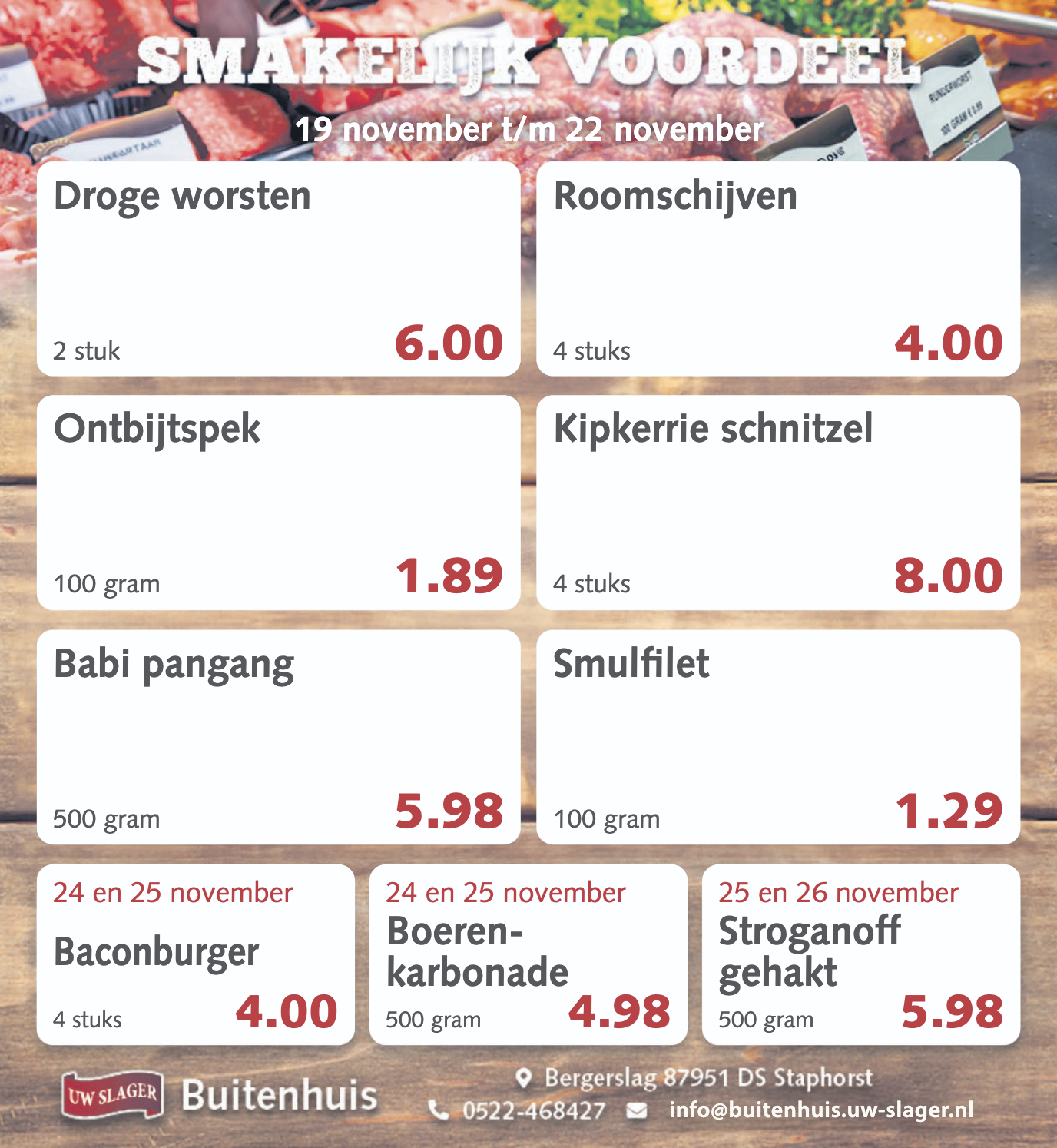 Uw Slager Buitenhuis – weekaanbieding 19 november t/m 22 november