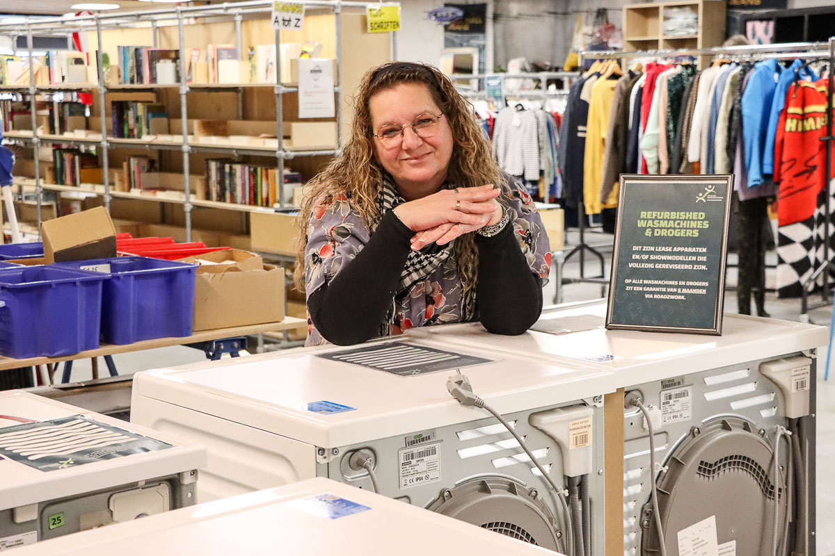 De klanten die binnenlopen, zijn net zo gevarieerd als de apparaten zelf. ‘Een vader kwam laatst drie apparaten kwam halen,’ vertelt Ellen. ‘Zijn dochter ging op kamers in Amsterdam. Eerst de wasmachine, toen de droger, en uiteindelijk haalde hij ook de vaatwasser op. Een oudere mevrouw zag precies dezelfde wasmachine staan die ze zelf al had. Ze zei: “Het is een hele fijne wasmachine, maar die van mij is versleten en rammelt aan alle kanten. Kan ik deze meenemen en de andere inleveren?” Dat was prima. Ze was dolblij met eenzelfde model dat weer als nieuw draaide. En dan zijn er jonge stellen die hun eerste huis inrichten, of de mensen die gewoon bewust voor tweedehands kiezen. Ze snappen niet hoe we aan zulke mooie machines komen. En als ik dan vertel dat ze door een sociaal werkbedrijf zijn opgeknapt, vinden ze dat prachtig. Ze gunnen het ons, en ze vinden het fijn dat hun aankoop verschil maakt.’