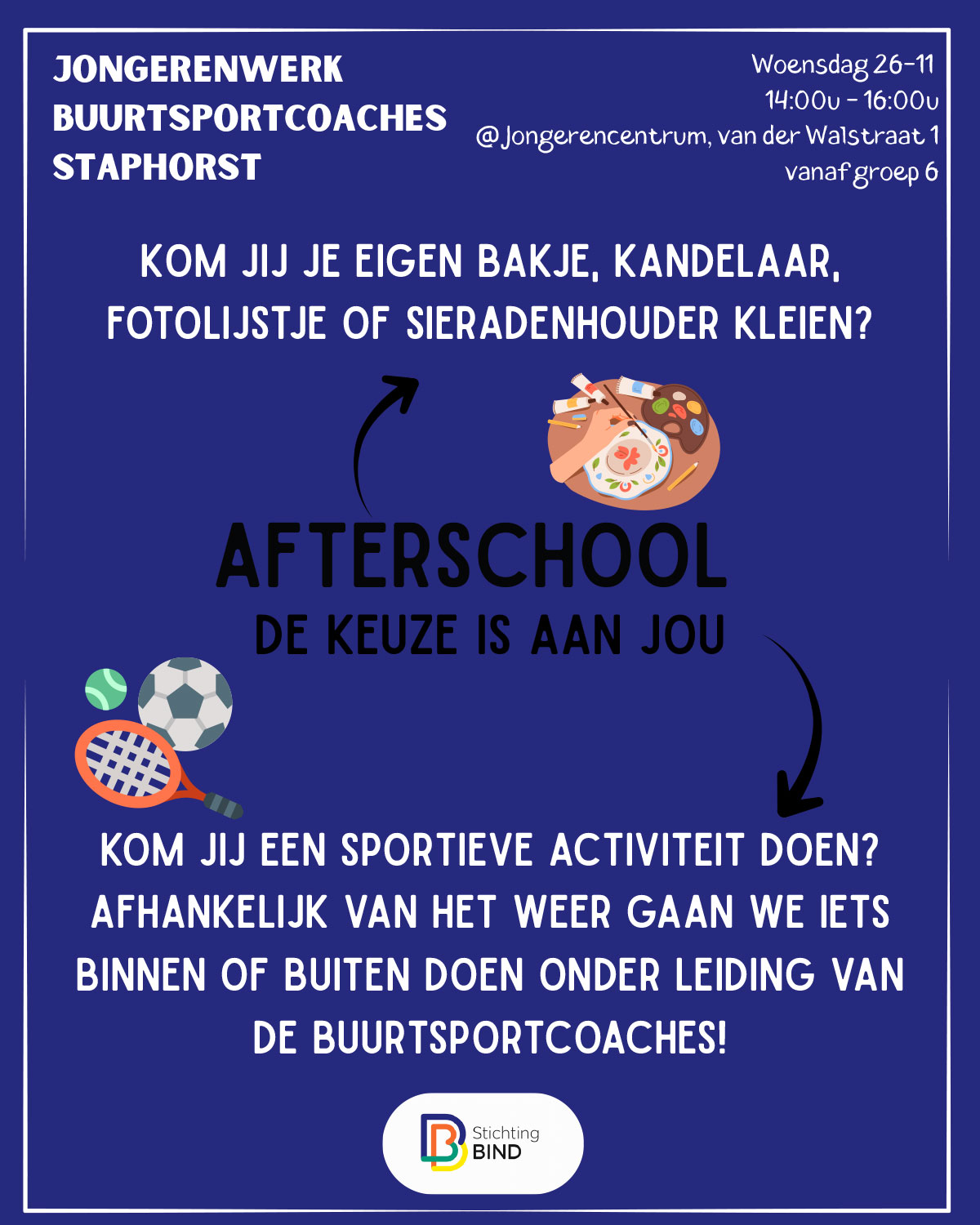 We gaan knutselen met klei, of je kan een sportieve activiteit doen samen met de buurtsportcoaches!