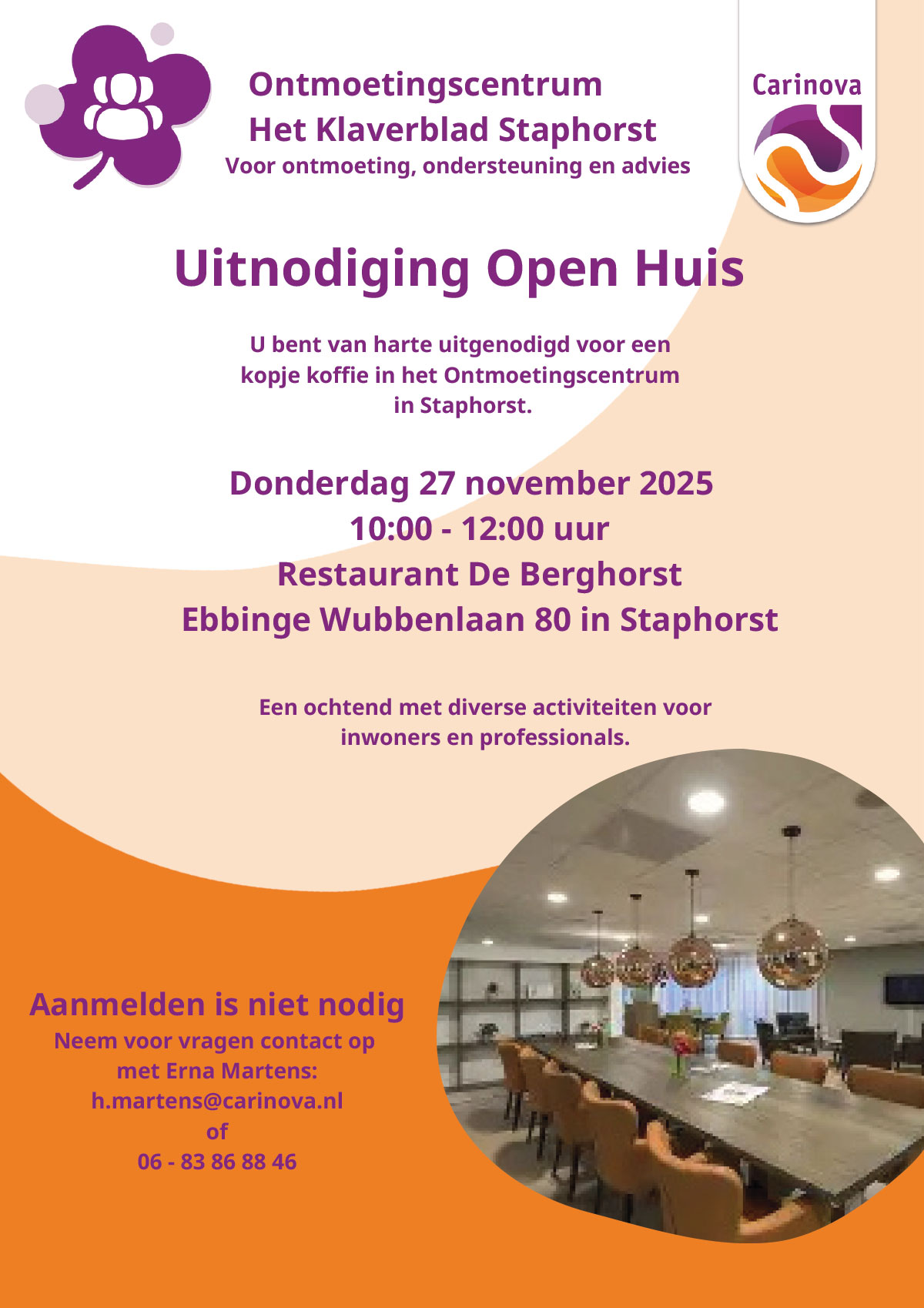 Uitnodiging Open Huis Ontmoetingscentrum Het Klaverblad Staphorst