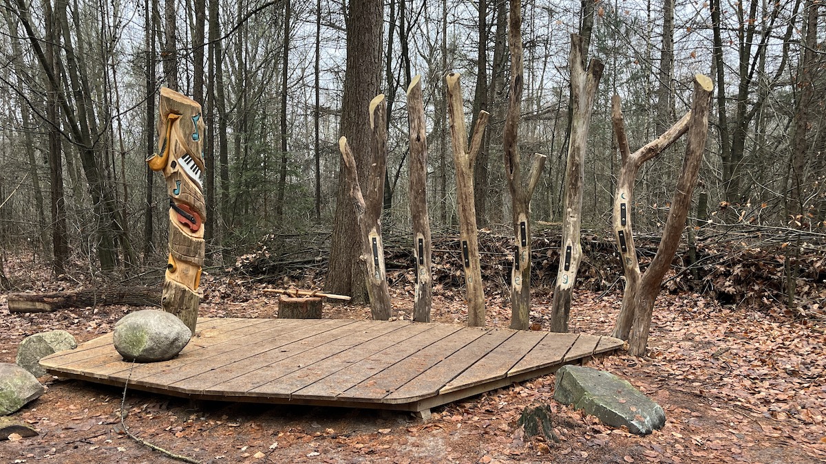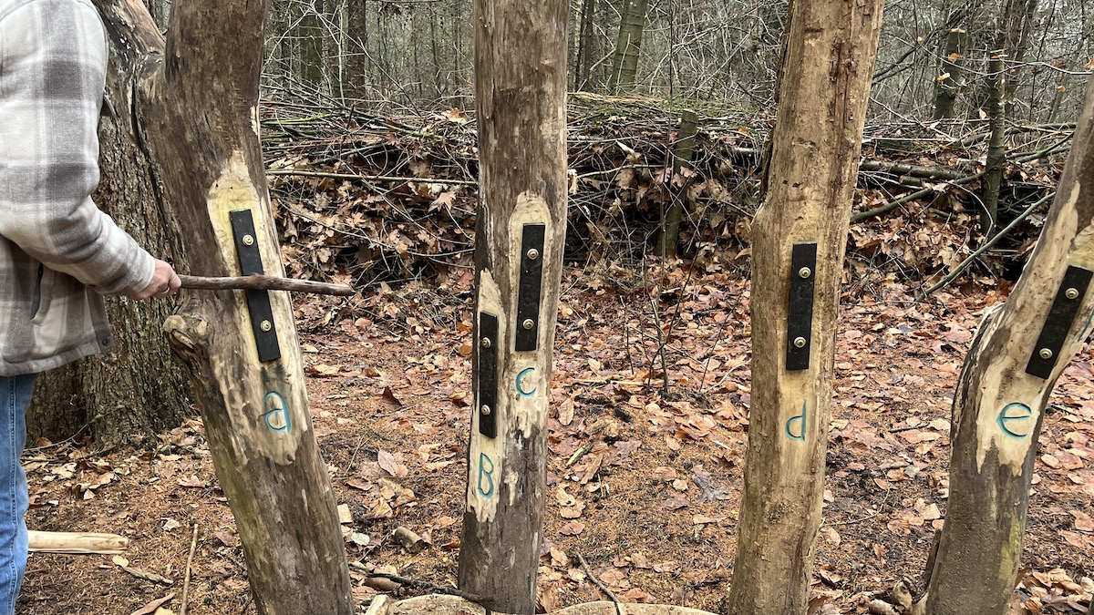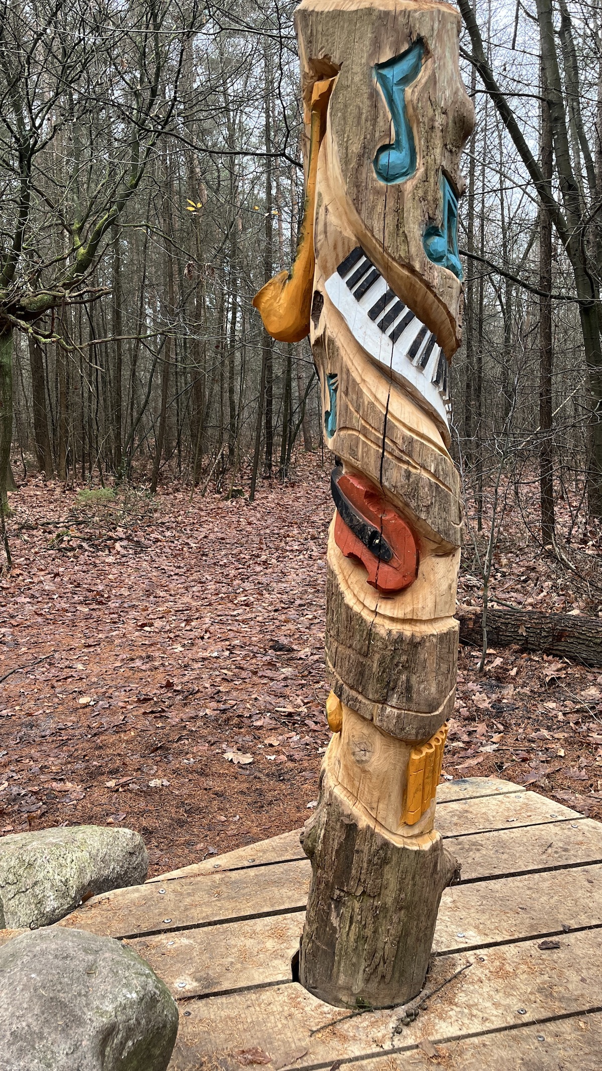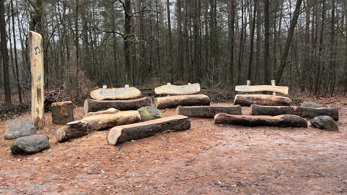 Een werkelijk prachtig bedacht en uitgevoerd bostheater kom je tegen op het belevingspad (begin rode route) in het bos van Staphorst. Een toonladder op een op boomstammen vastgemaakte xylofoon. Leef je uit en geniet. Toeschouwers en -hoorders kunnen plaatsnemen op de uit boomstammen gezaagde banken. Kunstig gemaakte muziekinstrumenten afgebeeld op een paal. Kom het zelf bekijken en bespelen.