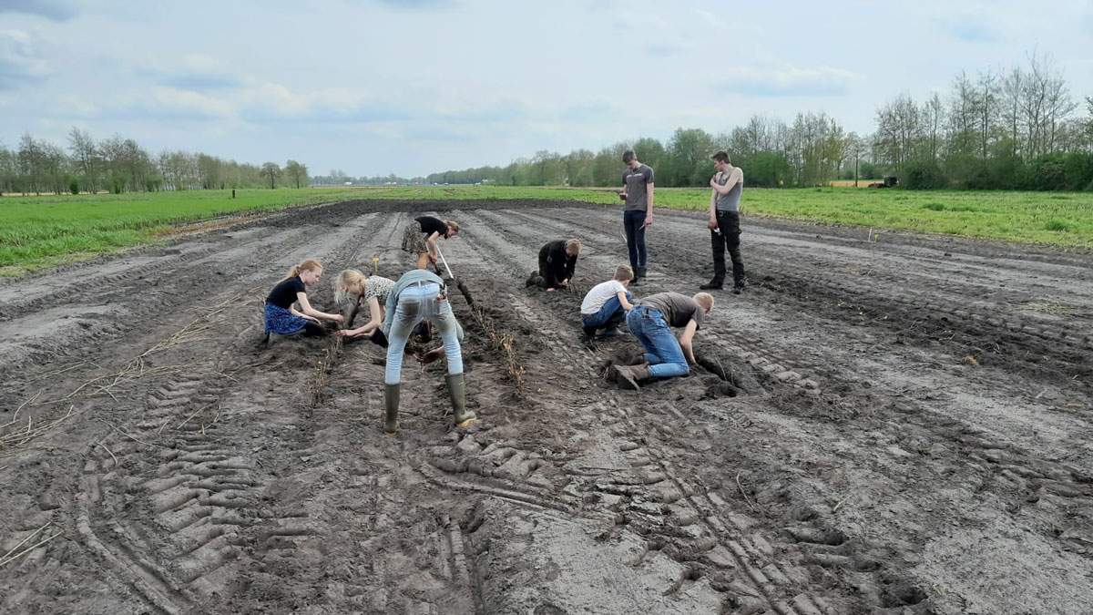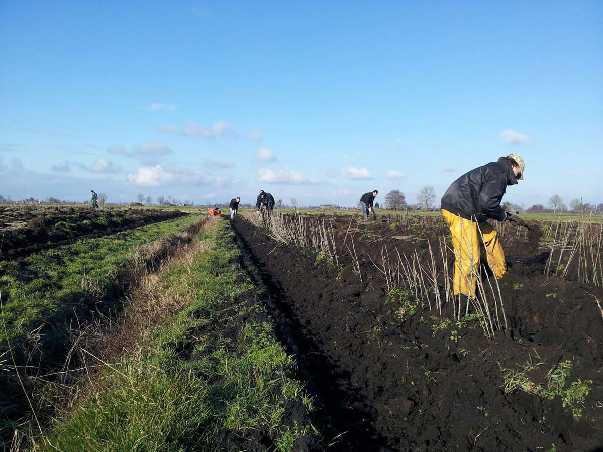 Vandaag helpen de kleinkinderen (een tiental van de 51) en zijn schoonzoon, die dit werk de laatste vijf jaren samen met hem doet. Door de jaren heen hebben alle veertien kinderen, mét hun aanhang, hun steentje bijgedragen: schoffelen en harken met vrienden in de zomervakanties, rooien en sorteren in de winter, en weer planten tegen het voorjaar. Het zijn warme, kostbare herinneringen. Met z’n allen op de grote wagen richting het land. Om tien uur koffie van moeders. Als we niet al te zwart waren, mochten we binnen aan de keukentafel; zo niet, dan werden we naar de schuur verwezen. Vader genoot ervan. Hij was niet streng, en daardoor kon er tijdens het werk veel gelachen worden. Kluiten aarde vlogen soms door de lucht als hij even niet keek, we speelden verstoppertje tussen de rijen boompjes, of we zongen samen het Rouveense volkslied.