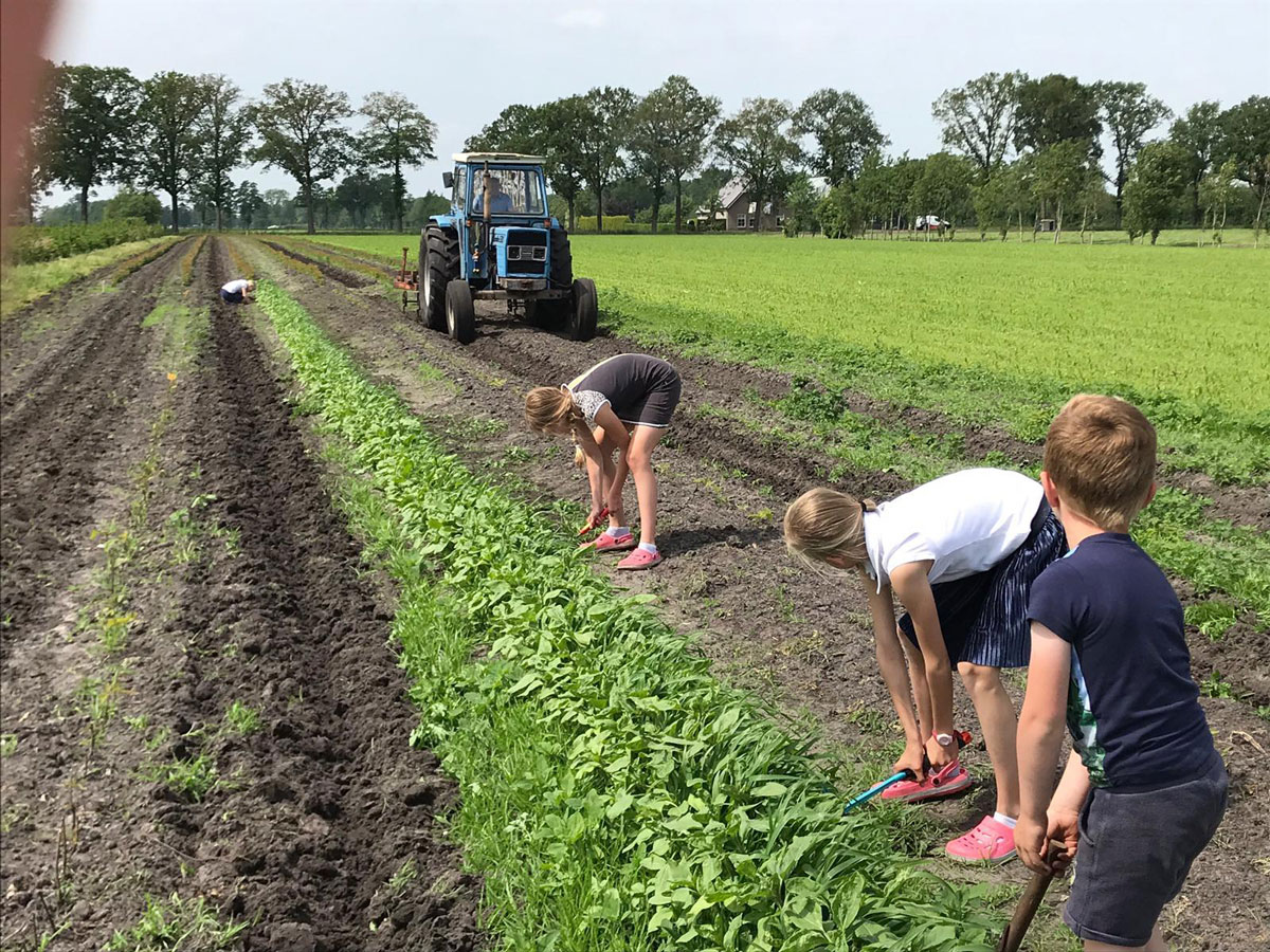 Vandaag helpen de kleinkinderen (een tiental van de 51) en zijn schoonzoon, die dit werk de laatste vijf jaren samen met hem doet. Door de jaren heen hebben alle veertien kinderen, mét hun aanhang, hun steentje bijgedragen: schoffelen en harken met vrienden in de zomervakanties, rooien en sorteren in de winter, en weer planten tegen het voorjaar. Het zijn warme, kostbare herinneringen. Met z’n allen op de grote wagen richting het land. Om tien uur koffie van moeders. Als we niet al te zwart waren, mochten we binnen aan de keukentafel; zo niet, dan werden we naar de schuur verwezen. Vader genoot ervan. Hij was niet streng, en daardoor kon er tijdens het werk veel gelachen worden. Kluiten aarde vlogen soms door de lucht als hij even niet keek, we speelden verstoppertje tussen de rijen boompjes, of we zongen samen het Rouveense volkslied.
