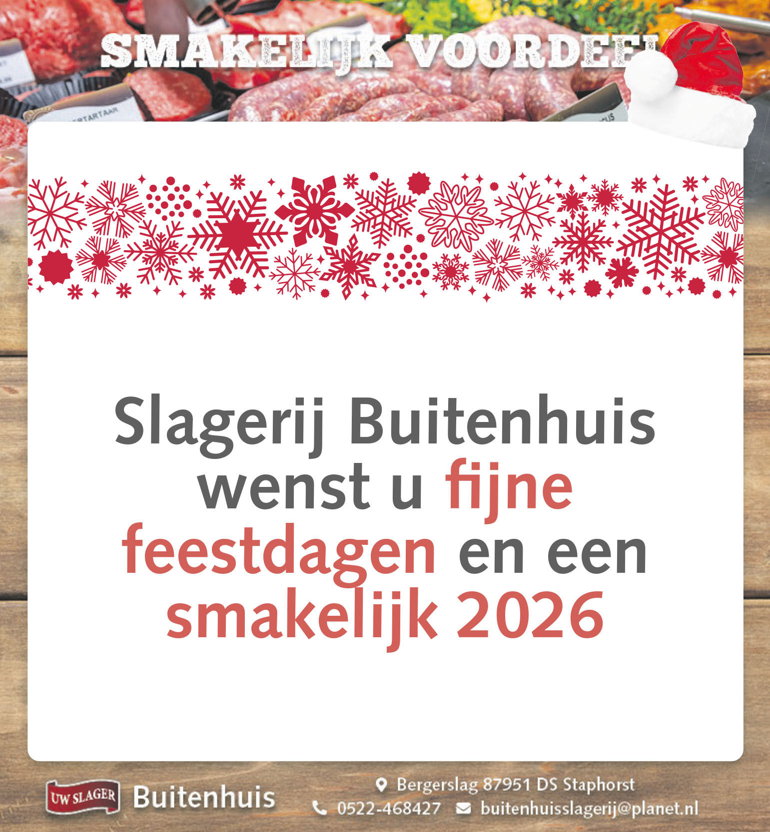 Slagerij Buitenhuis wenst u fijne feestdagen en een smakelijk 2026!
