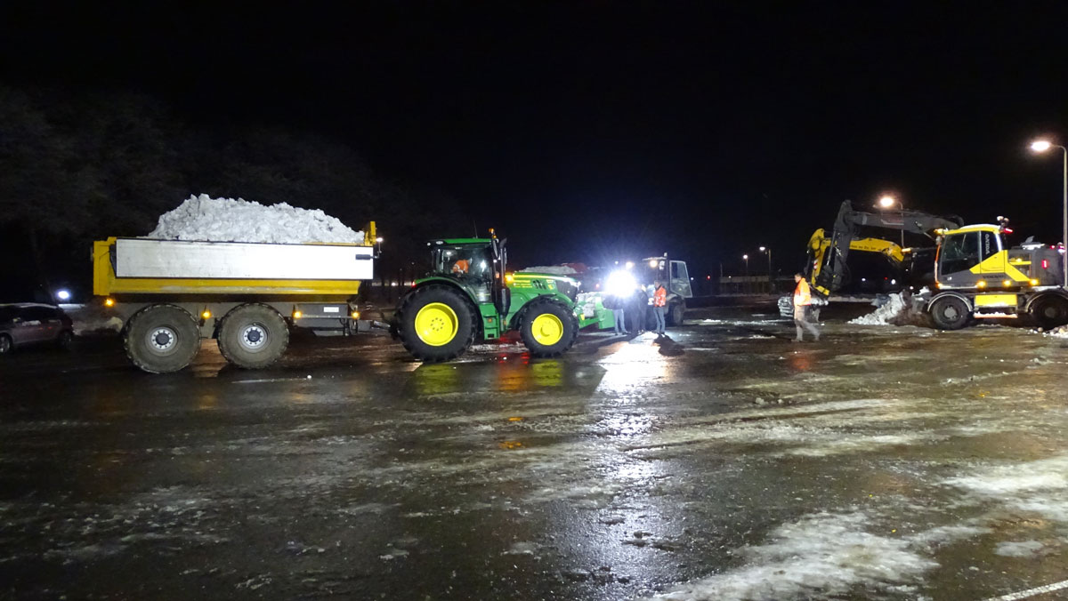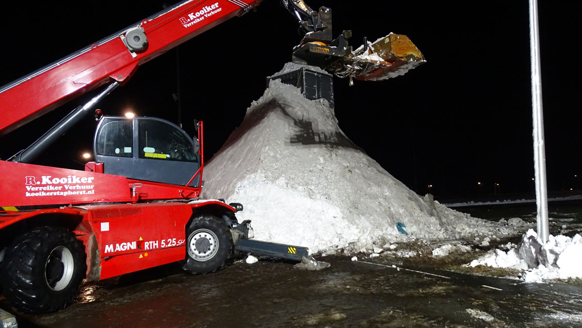 Dat is waar ze op de Tippe mee bezig zijn. Peter Stegeman kwam op het idee en wist velen enthousiast te maken. Wat rondbellen en dan aan de gang gaan. Trekkers en vrachtauto’s voeren de sneeuw aan vanuit de wijde omgeving. Er ligt genoeg maar er is veel nodig om tot recordhoogte te komen.