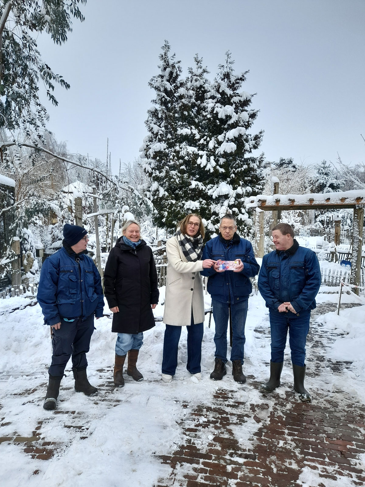 Tijdens de kerstbijeenkomst van het personeel van de gemeente Staphorst zijn er een aantal ondernemersbonnen ingezameld voor de Kinderboerderij Samenzóo. Het personeel heeft deze uit hun eigen kerstpakketten apart gelegd voor Samenzóo. Vandaag kwam een delegatie van het gemeentehuis langs om de bonnen aan een delegatie van de medewerkers van Samenzóo te overhandigen.