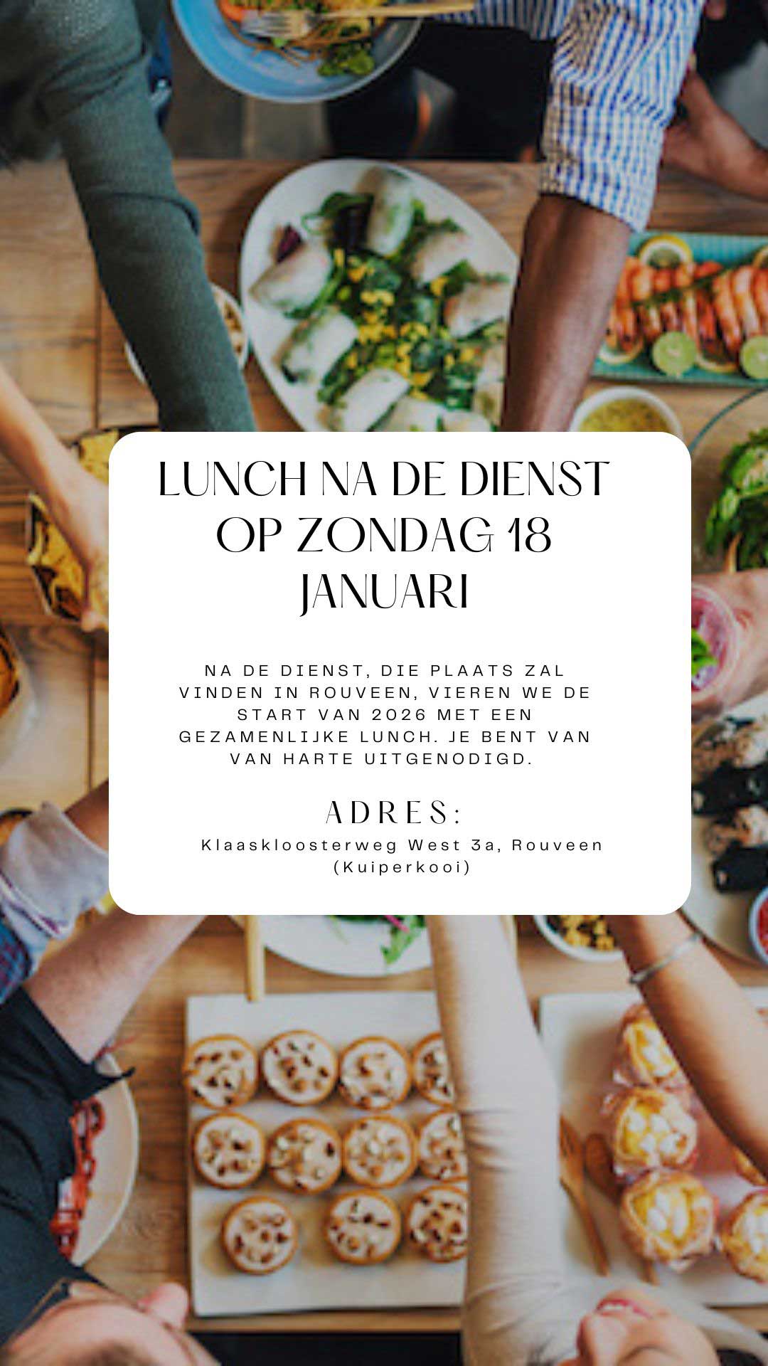 Op zondag 18 januari is er een lunch na de dienst bij Volg Jezus.