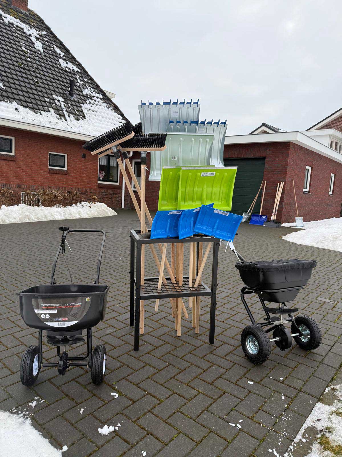 Sneeuwscheppen in verschillende formaten, ook voor kinderen. Zelfs de OBOS sneeuwschep te verkrijgen en te testen.
