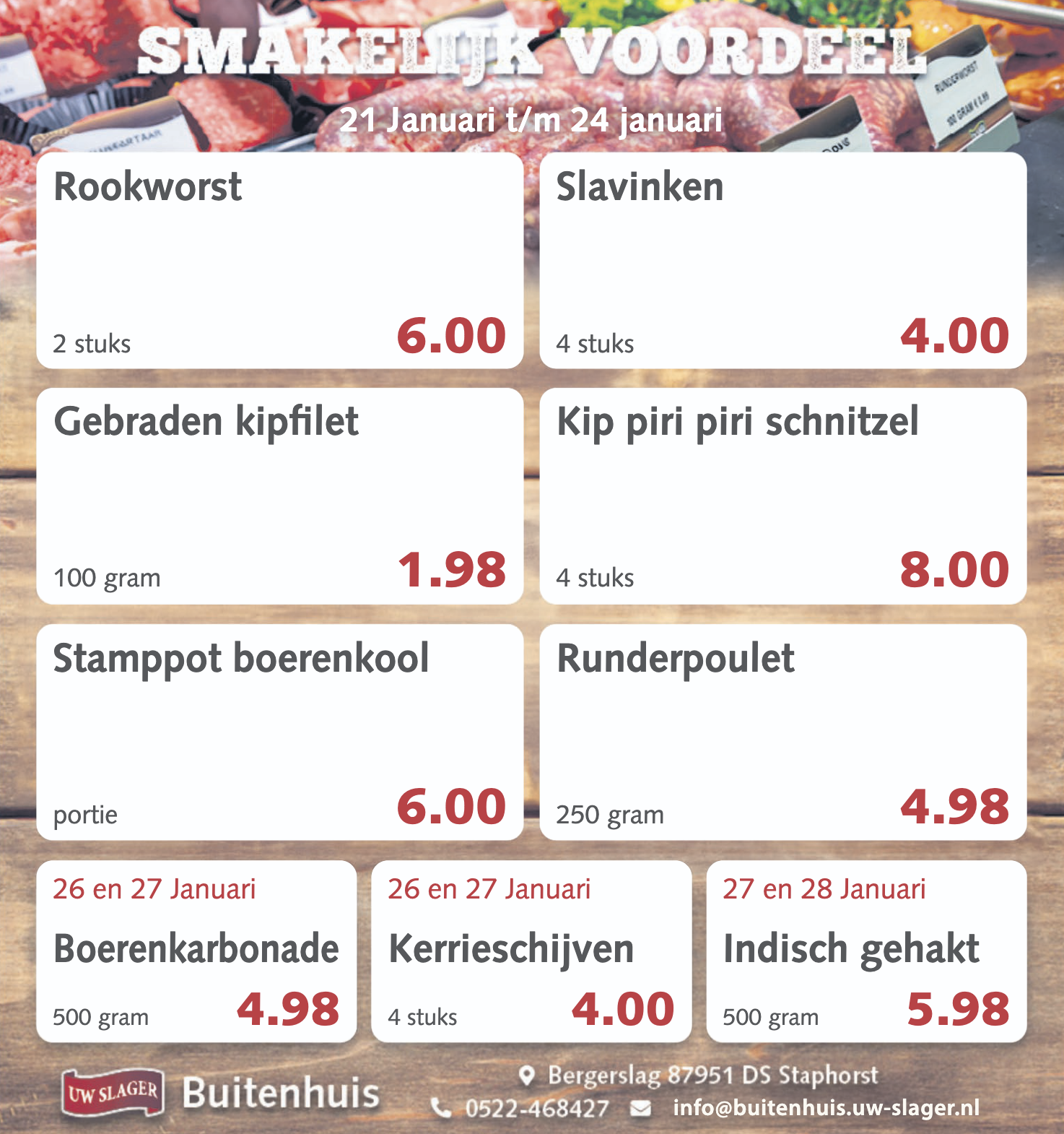 Uw Slager Buitenhuis – weekaanbieding 21 januari t/m 24 januari
