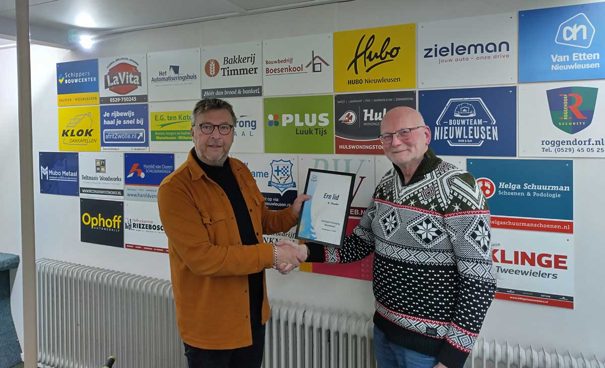 Daarnaast kende de vereniging afgelopen jaar één jubilaris. Voorzitter Hilco ten Kate huldigde Klaas Vonder vanwege zijn indrukwekkende 55-jarig lidmaatschap. Deze uitzonderlijke prestatie werd bekroond met het erelidmaatschap van de vereniging.