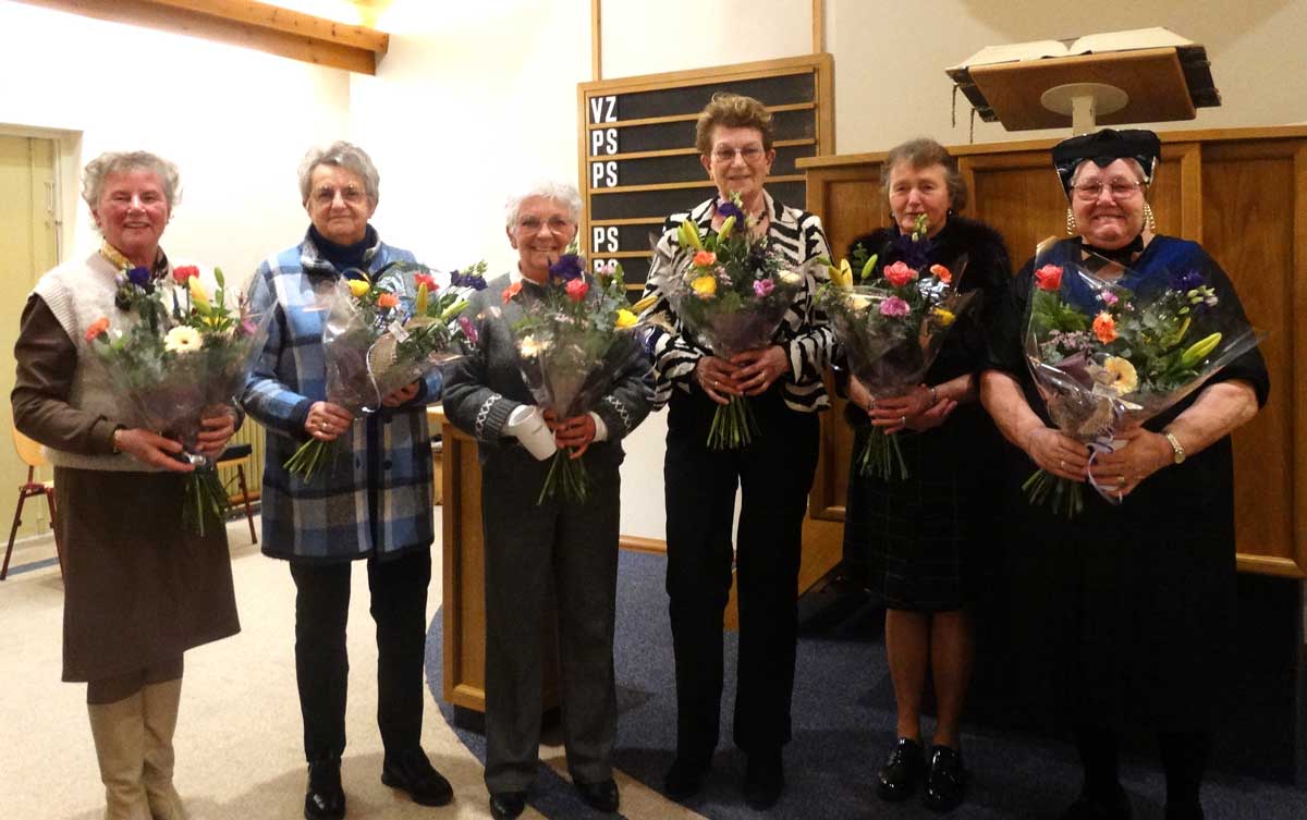 Na enkele huishoudelijke mededelingen was het tijd voor een feestelijk moment: de huldiging van de jubilarissen. Mevrouw G. Bisschop-Hekman en mevrouw G. Hoeve-Huisman zijn 25 jaar lid. Mevrouw M. Dekker-Dunnink en mevrouw A. Talen-Boessenkool vieren dit jaar hun 40-jarig lidmaatschap. Maar liefst 50 jaar lid zijn mevrouw A. Keizer-Huls en mevrouw F. Mussche-Witte. Ook mevrouw Monsma is 50 jaar lid, maar kon door gezondheidsredenen helaas niet aanwezig zijn.