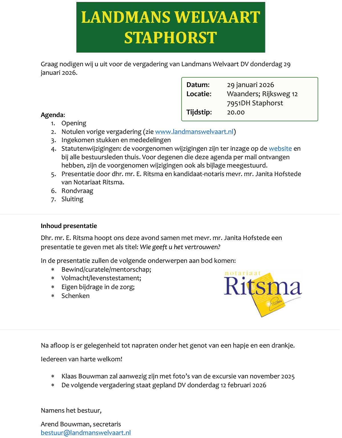 Bijeenkomst Landmans Welvaart Staphorst met oa Notaris Ritsma