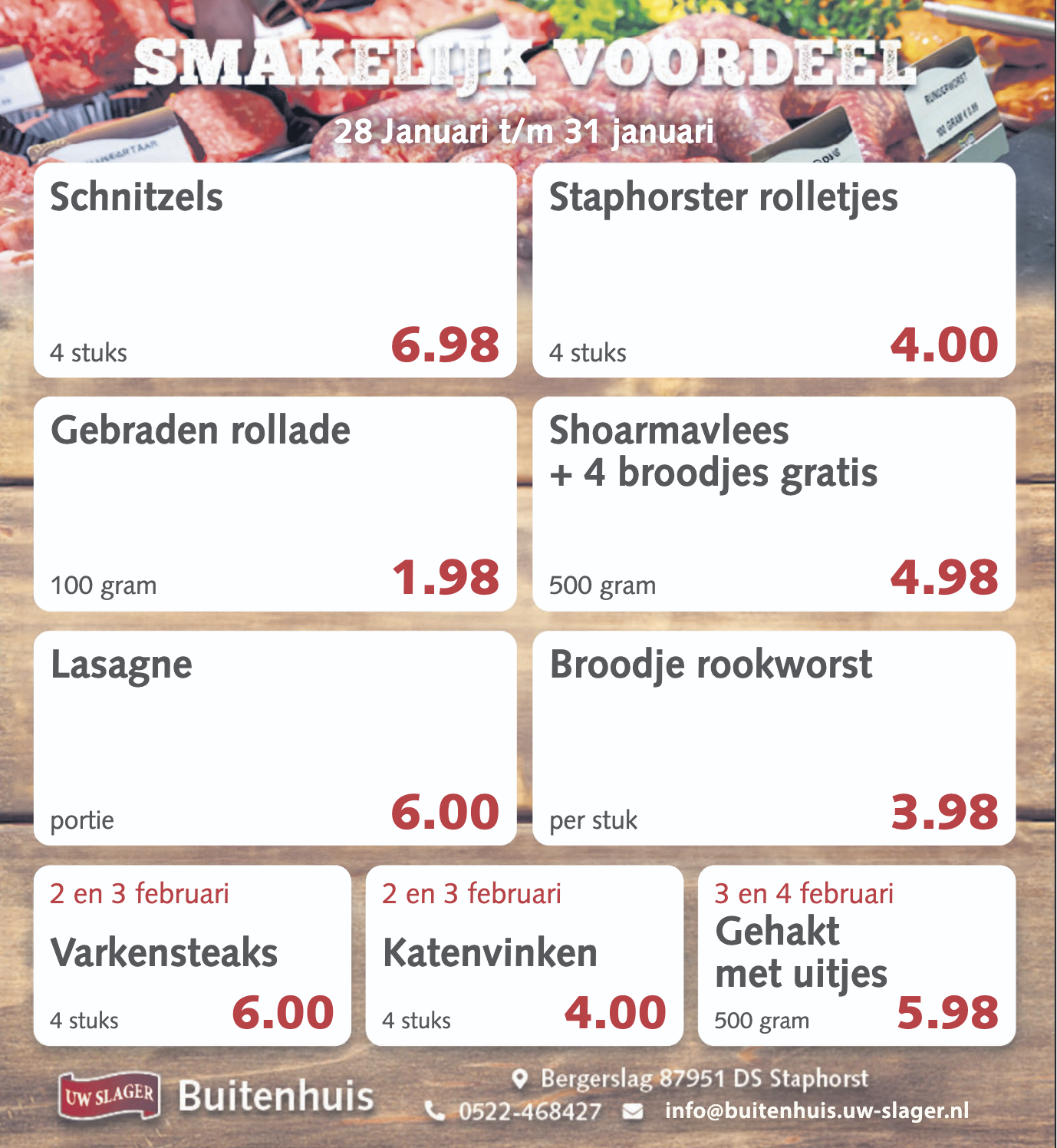 Uw Slager Buitenhuis – weekaanbieding 28 januari t/m 31 januari