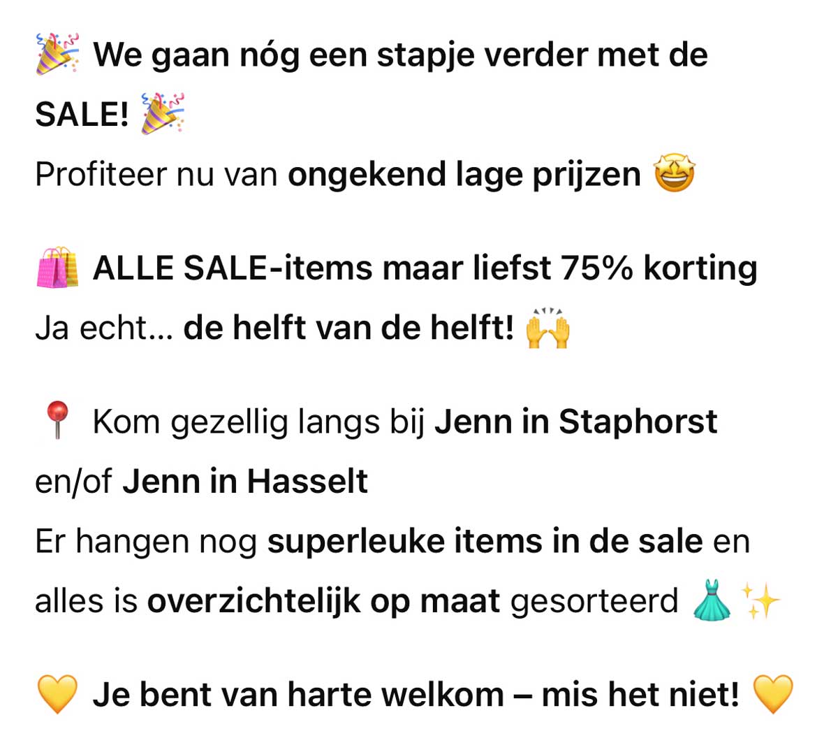 • Jenn: Alle Sale-items helft van de helft