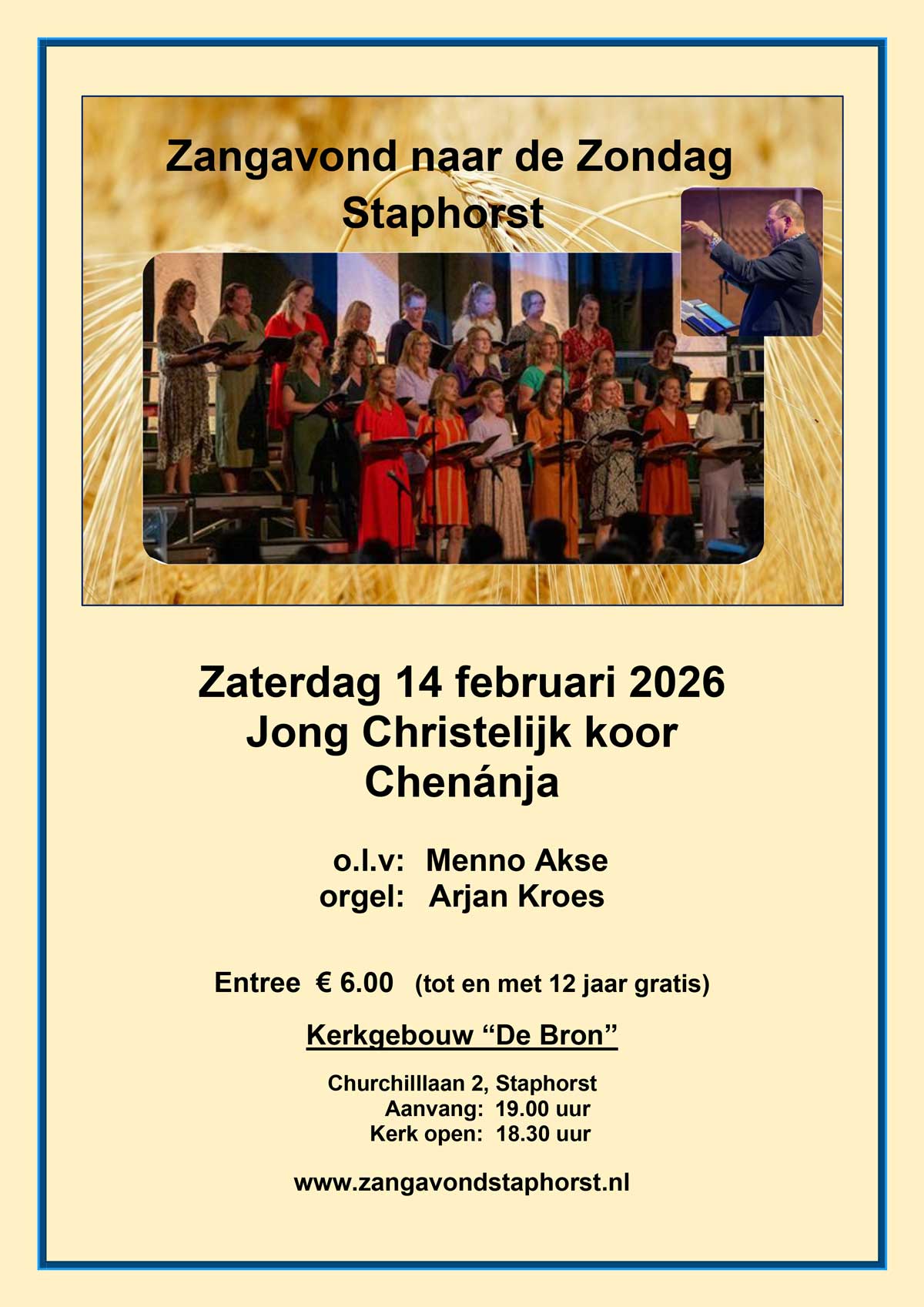 Met veel plezier hoopt de stichting Zangavond naar de Zondag op 14 februari 2026 wederom het lokale Jong Christelijk Koor Chenánja te mogen verwelkomen!