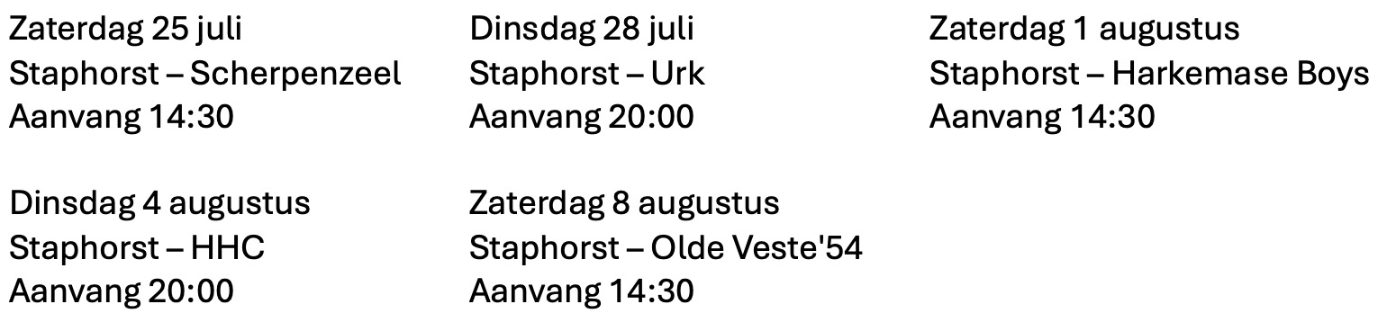 Al vele jaren organiseert de toernooicommissie van vv Staphorst het FinanXe Nederlagen Top Toernooi voor aanvang van de competitie van de 1e selectie van vv Staphorst op Sportpark “Het Noorderslag”. in Staphorst. Van de opbrengst, word er ieder jaar een schenking van € 1000,- gedaan aan een goed doel binnen de gemeentegrenzen van Staphorst. Bij het FinanXe Nederlagen Top Toernooi van 2025 werd deze schenking gegund aan de CMV. Prinses Margriet Rouveen/Staphorst.
