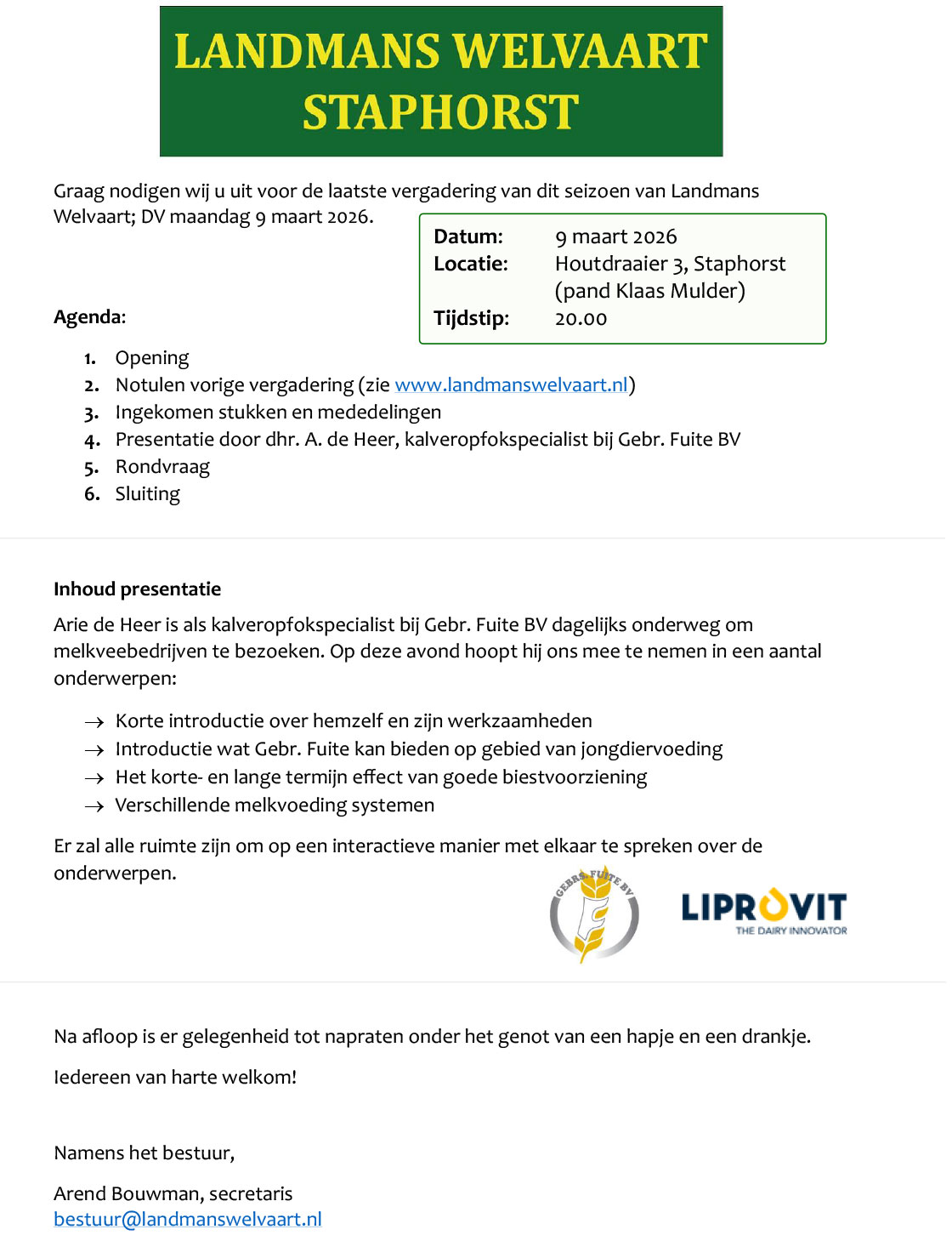 Landmans Welvaart laatste vergadering seizoen met presentatie van A. de Heer (Gebr. Fuite BV)