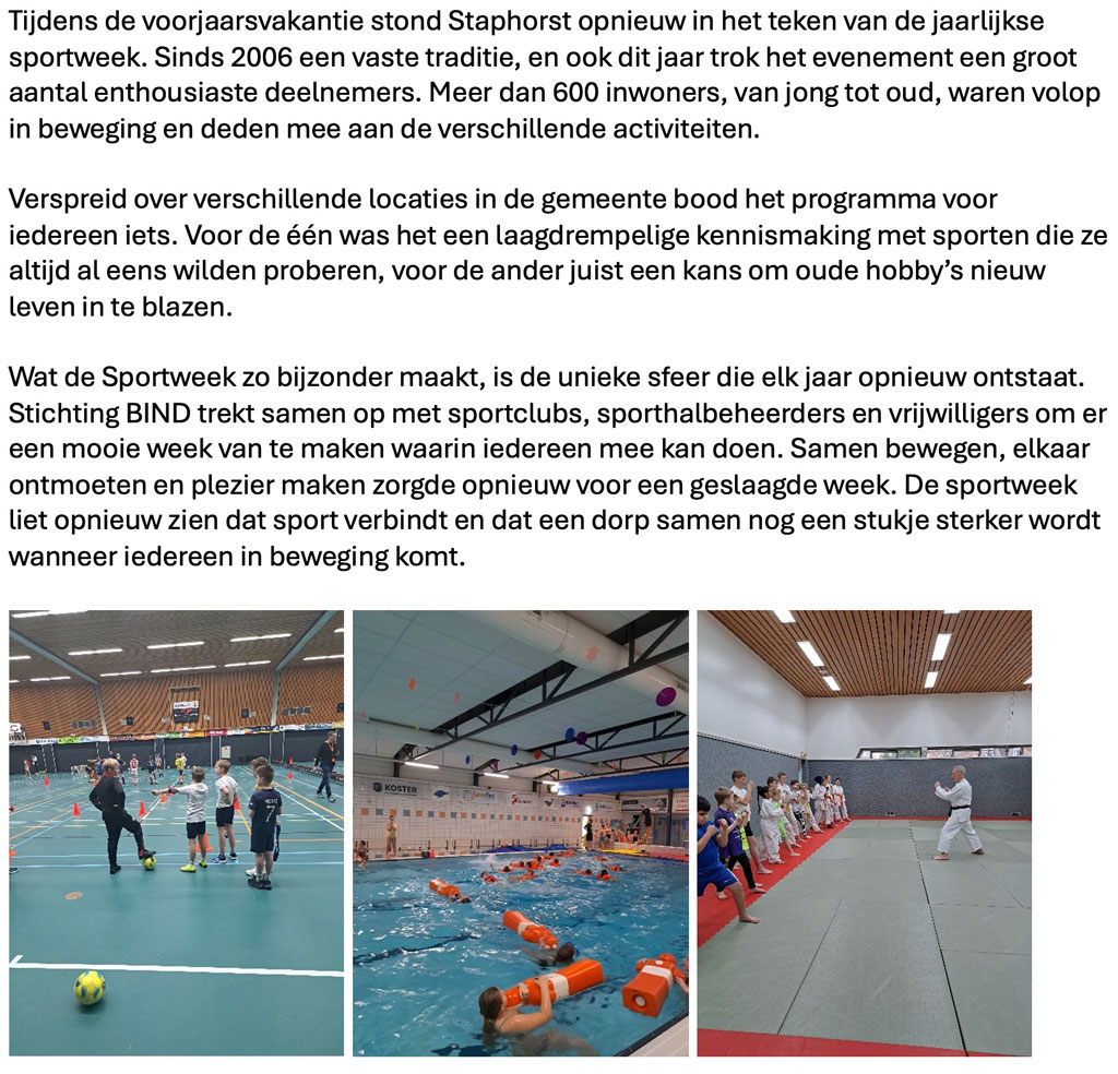 Een bruisende sportweek in Staphorst