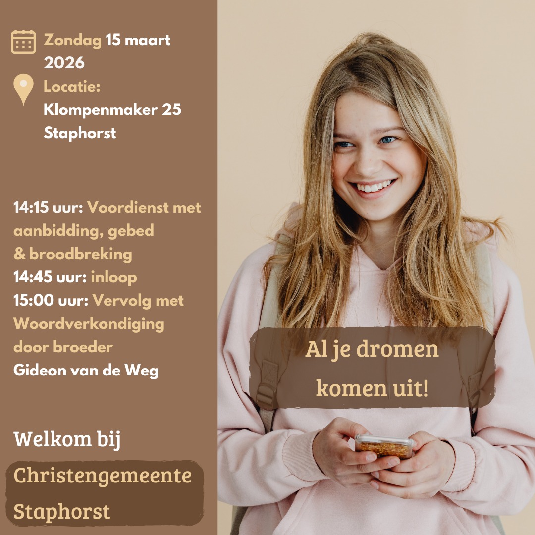 Iedereen is van harte welkom! Kijk gerust op de website van de gemeente: www.christengemeente-staphorst.nl