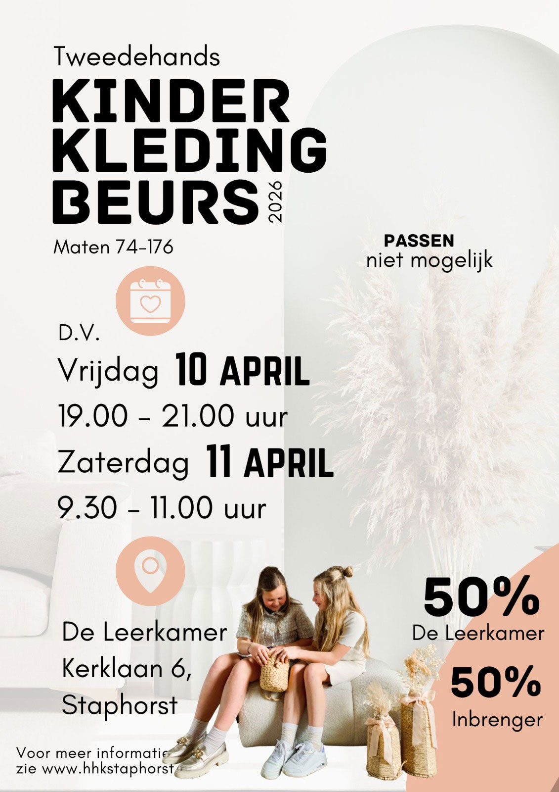 Op D.V. vrijdag 10 en zaterdag 11 april hopen we opnieuw de tweedehands kinderkledingbeurs te houden in De leerkamer. De verkoping is op vrijdagavond van 19.00 – 21.00 uur en op zaterdagmorgen van 9.30 – 11.00 uur in De leerkamer. Van de opbrengst gaat 50% naar de inbrenger en 50% is bestemd voor De leerkamer. (tekst gaat verder onder de poster)