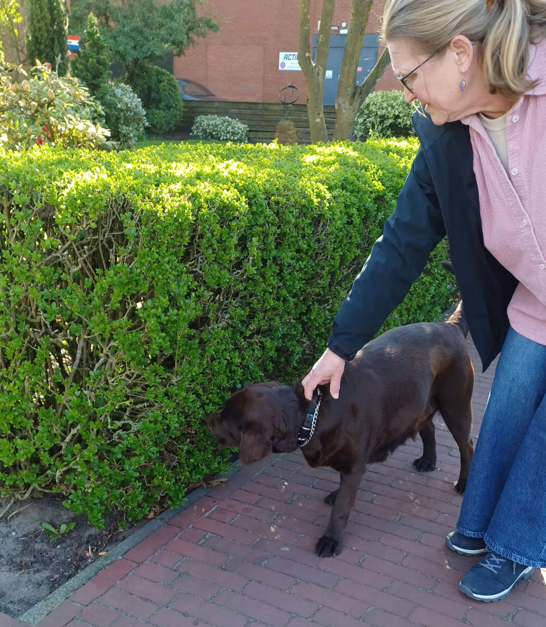 Bij de Nettorama (Boni) in Staphorst loopt een draadloze hond rond.
