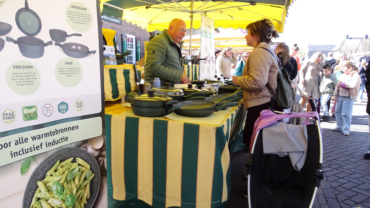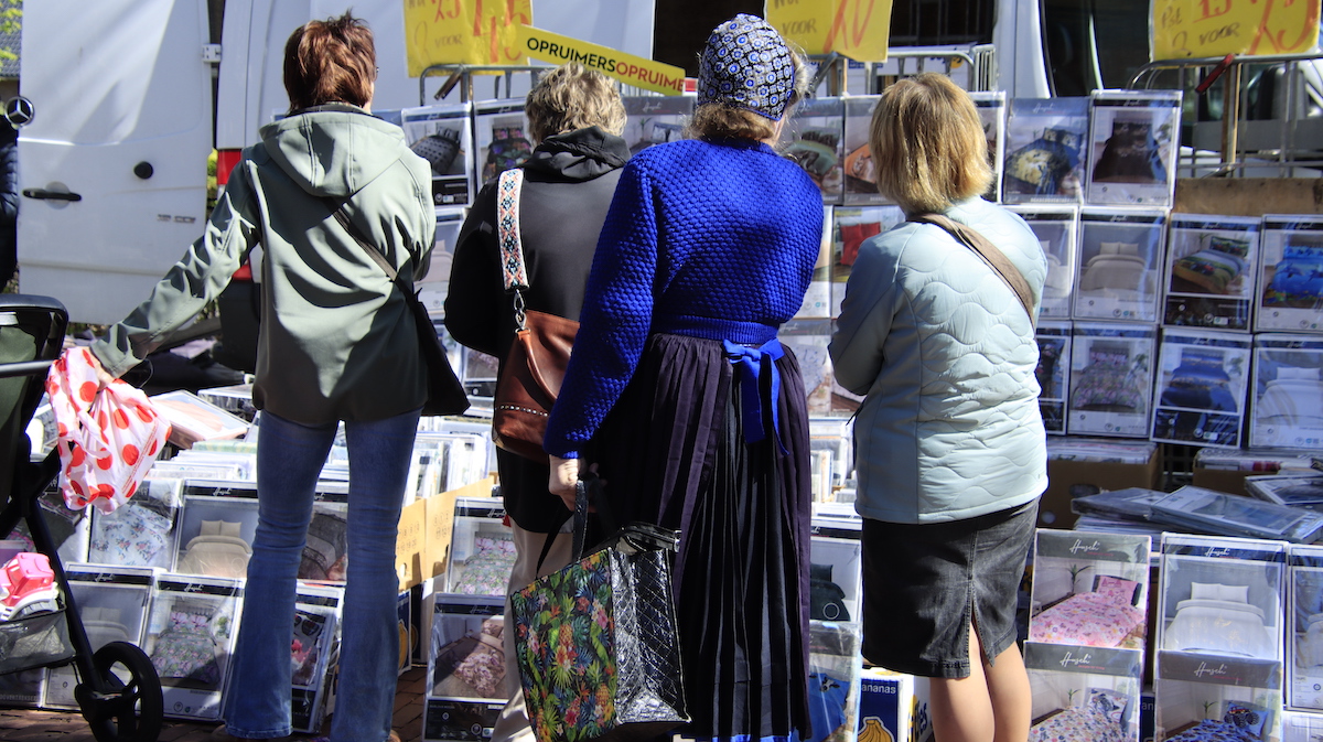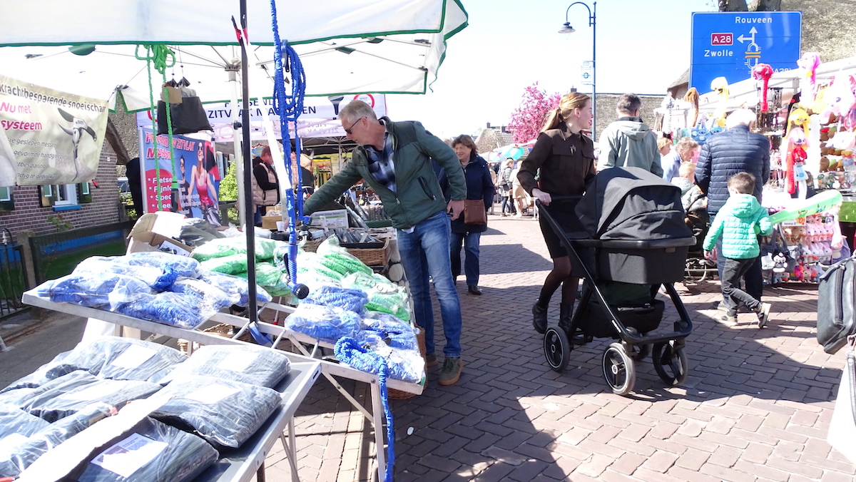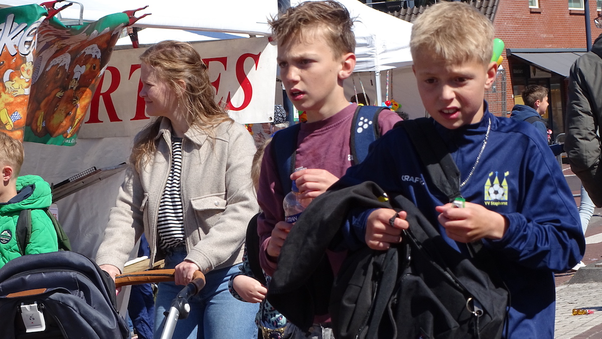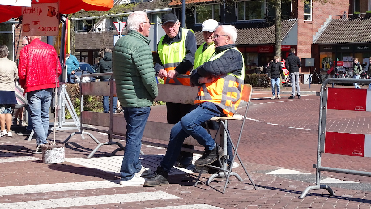 Een drukte van belang vandaag in het centrum van het pittoreske Staphorst. De Staphorster Markt staat weer op het programma en van heinde en verre komen de bezoekers hier weer op af. De scholen hebben vakantie dus op enig moment loopt de doorgang gezellig vast. De inrichting is dit jaar iets anders omdat het einde of het begin van de Gemeenteweg potdicht zit vanwege werkzaamheden. Nagenoeg alle kramen zijn bezet en de marktmeester en organisator toont zicht tevreden.