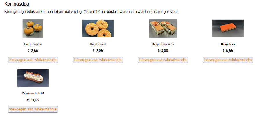 In verband met Ubaks en onze bedrijfssluiting op Koningsdag dienen Koningsdag bestellingen uiterlijk vrijdag 12.00 uur bij ons binnen te zijn.
