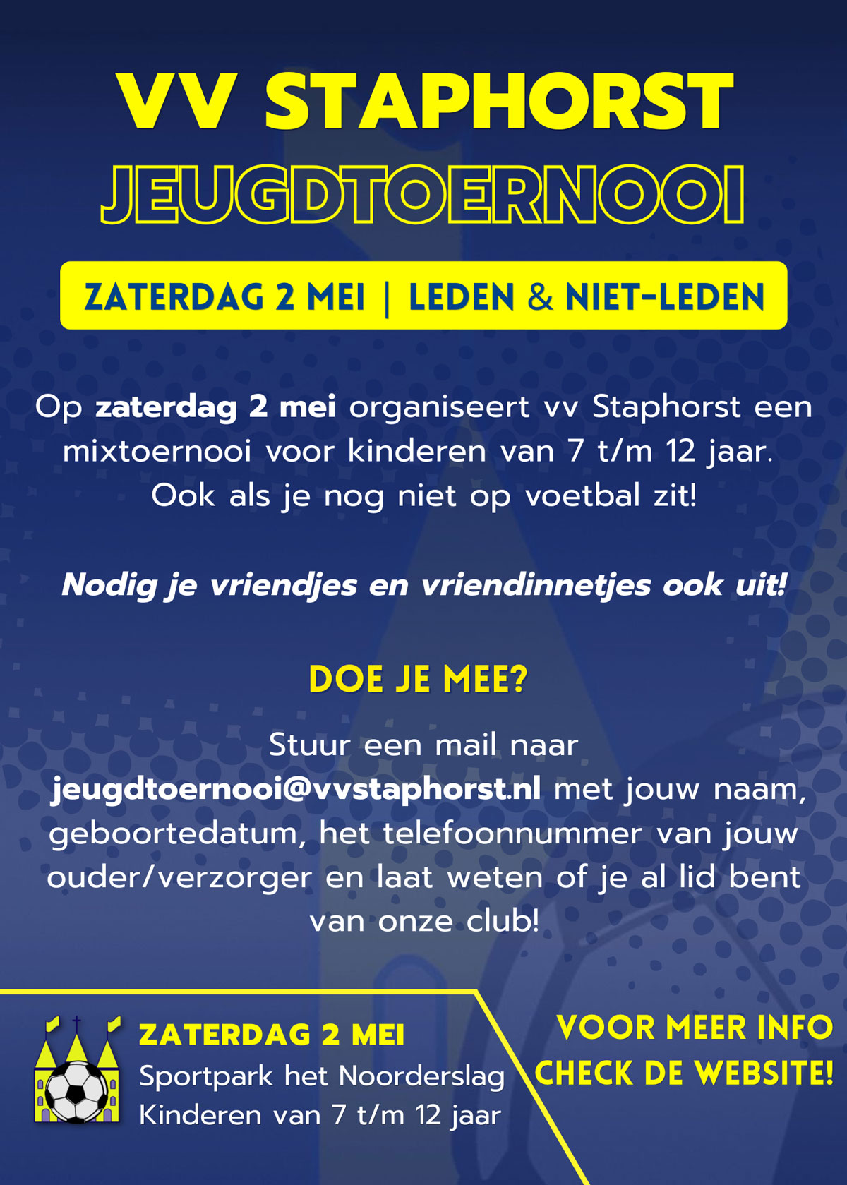 Aanmelden? jeugdtoernooi@vvstaphorst.nl